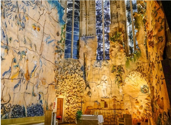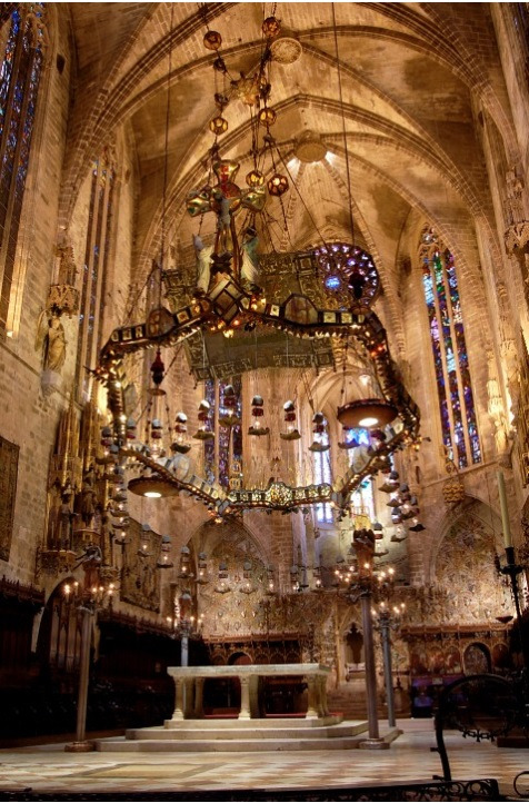 2017년 7월 나는 남편과 네 살 된 아들과 함께 십 년 만에 다시 스페인을 찾았다. 가우디 건물은 당연히 바르셀로나에만 있는 거겠거니 하며 휴양객 모드로 마요르카 시내 관광을 하고 있는데 웬걸... 마요르카 팔마 대성당에서 생각지 않게 가우디를 만나게 된 것이다. 성당을 들어서니 제단 위에 매달린 7 각형의 천개장식이 성당 분위기를 압도했고 아름다운 스테인드글라스와 생동감 있게 움직이는 벽면 물고기 장식에 실로 오랜만에 전율을 느꼈다. (참고로 마요르카 대성당은 가우디가 보수공사에 참여했던 건물이며 벽면 물고기 장식은 가우디 이후 조각가 Miquel Barceló에 의해 만들어졌다.)