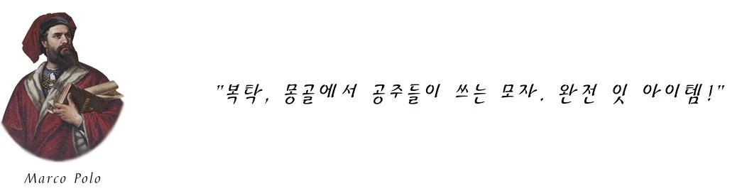 몽골 왕실 여성들은 전장에서 말을 타고 다니며 병사들을 지휘하고 평소 남성들과 레슬링을 할 정도로 무예에도 뛰어났으며 덩치면에서도 남성에게 뒤지지 않았죠. 복식 또한 남녀 차이가 거의 없었기 때문에 높은 모자로 구분을 할 수 있었는데, 복탁을 쓴 그녀들을 멀리서 보면 철모와 무기로 무장한 군인처럼 보였다고 합니다.