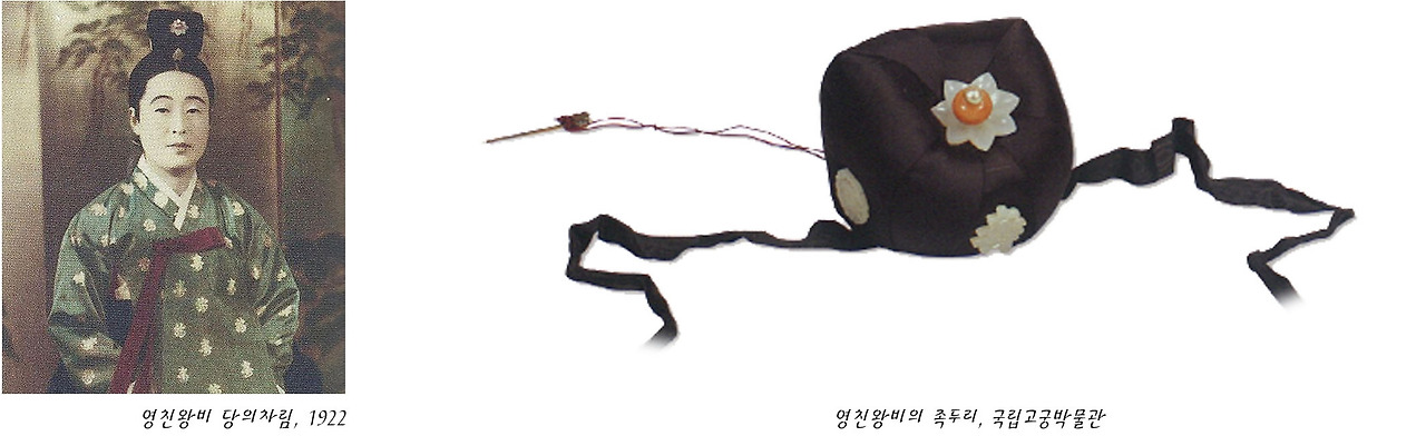 국립고궁박물관에 있는 영친왕비 이방자 여사가 착용했던 족두리입니다. 절제된 장식이 기품 있어 보이는 족두리네요. 솜의 부피감이 느껴지는 게 겹족두리로 보여집니다.