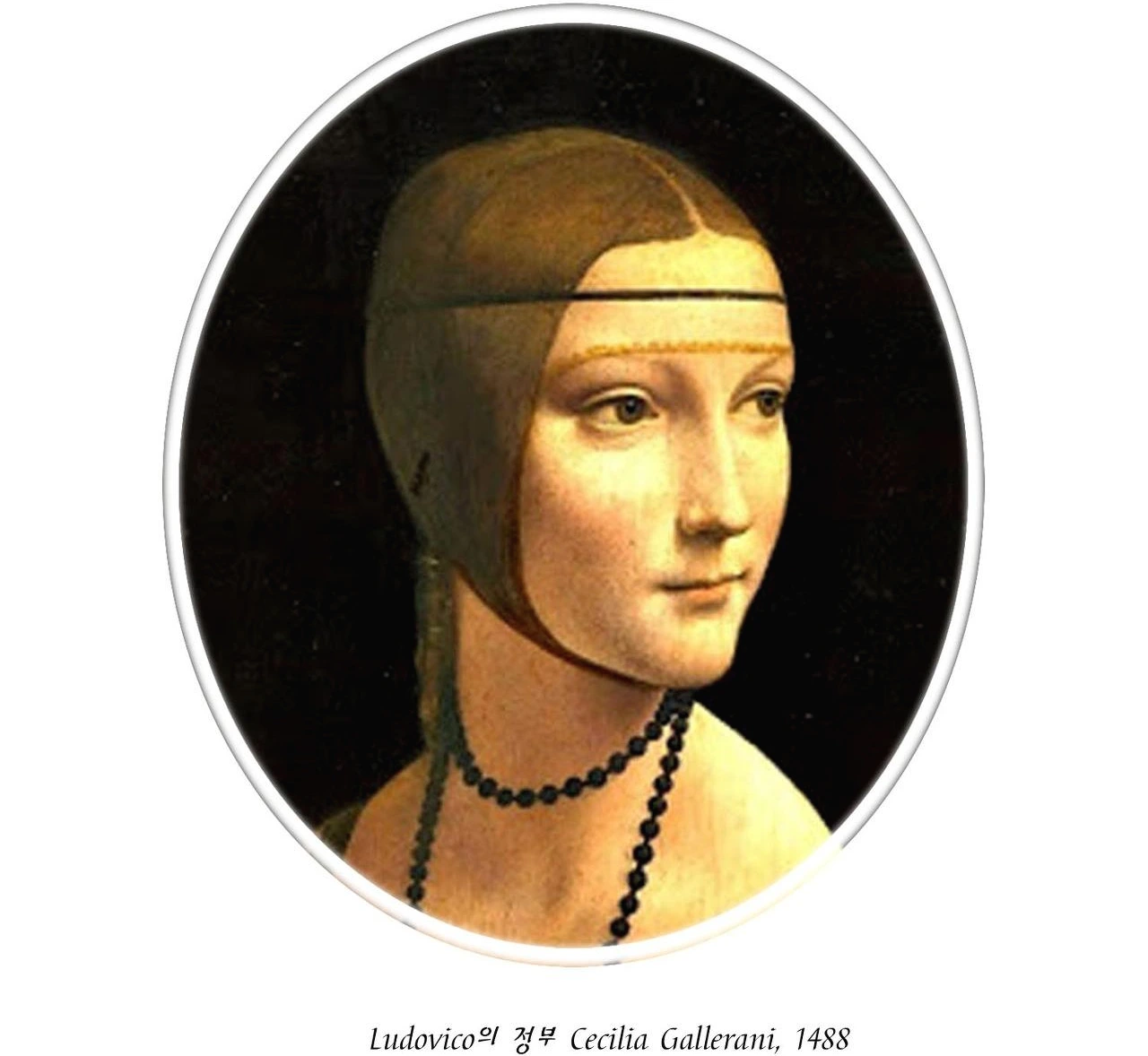 첫째 딸 이사벨라의 경우엔 먼저 딸의 어린 나이를 이유삼아 여러 번 결혼을 연기했던 엄마 엘레오노라는 둘째 딸의 혼사는 행여 파투 날라 전전긍긍하며 딸보다는 나라를 더 생각하는 태도를 보였죠. 루도비코에게 체칠리아라는 공식 정부가 있었기 때문에 더 초조해졌습니다. 체칠리아는 레오나르도 다 빈치의 4대 여성 초상화 중 하나로도 유명한 여인이지요.