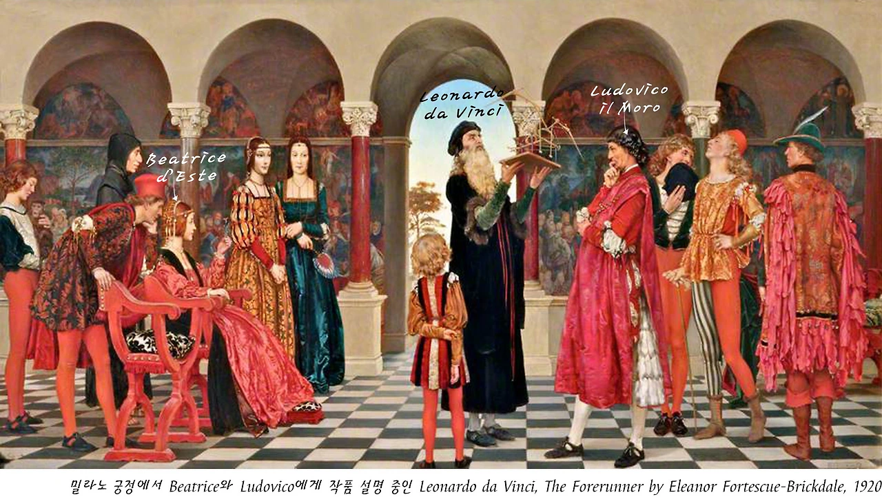 계획대로 모든 결혼절차가 끝난 이후엔 더없이 화려한 축제가 이어졌습니다. 결혼 축하 행사를 기획한 이는 레오나르도 다 빈치였죠. 일 모로의 위대함을 확인시키기 위해 화려하고 웅장한 스타일의 축하 행사를 준비했습니다. 베아트리체 일행은 놀랄 수밖에 없었지요.
