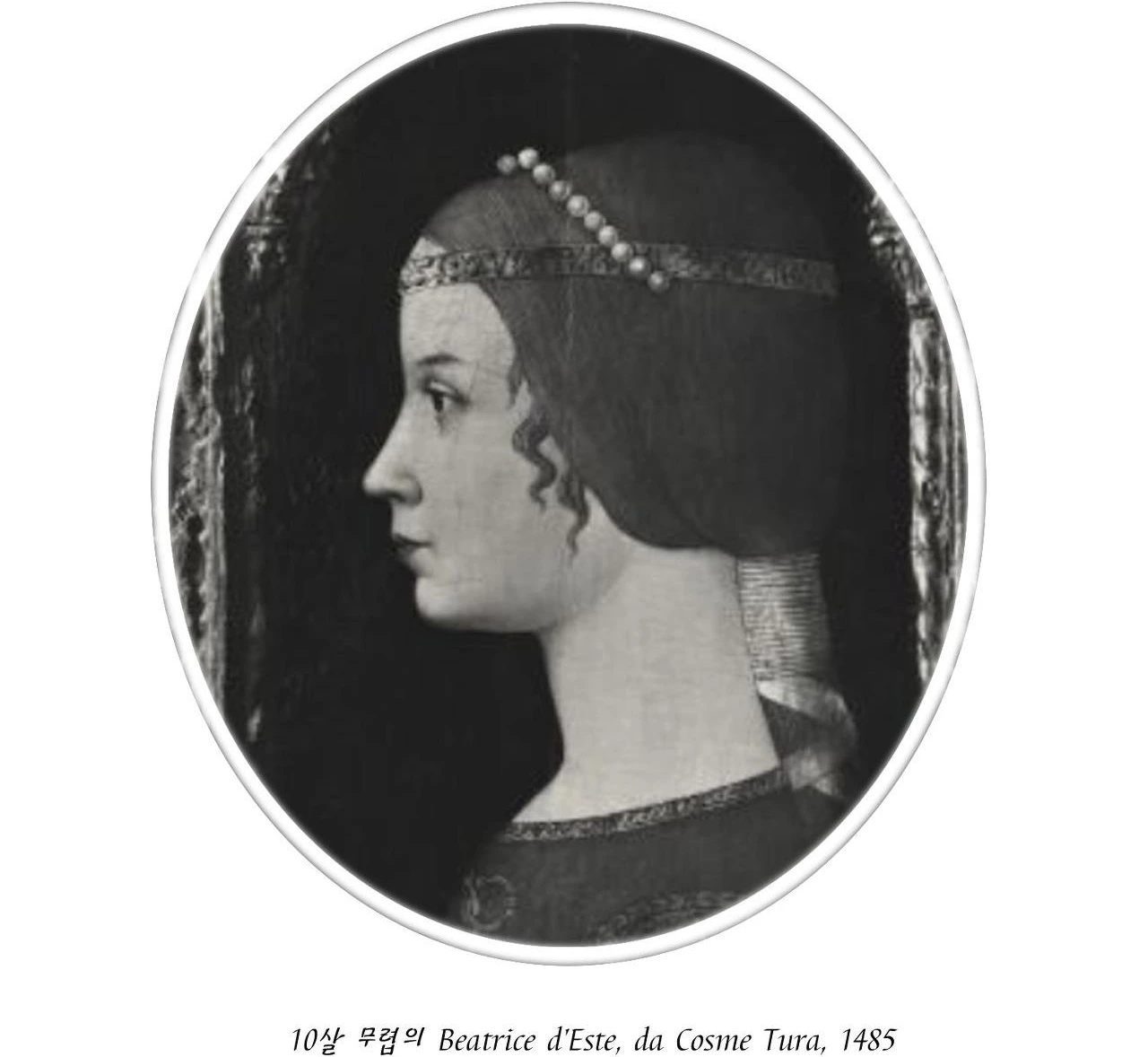 그 다음 해엔 그렇게 고대하던 아들이 태어나, 부모의 관심에서 늘 조금은 뒷전이었던 베아트리체 데스테{Beatrice d’Este}는 두 살 무렵부터 할아버지 페르디난도 1세{Ferdinando I}에게 맡겨져 조용한 어린 시절을 보냈지만, 결혼 후엔 밀라노의 패션리더가 되어 화려한 삶을 살다 21살의 이른 나이에 갑작스레 생을 마감합니다.