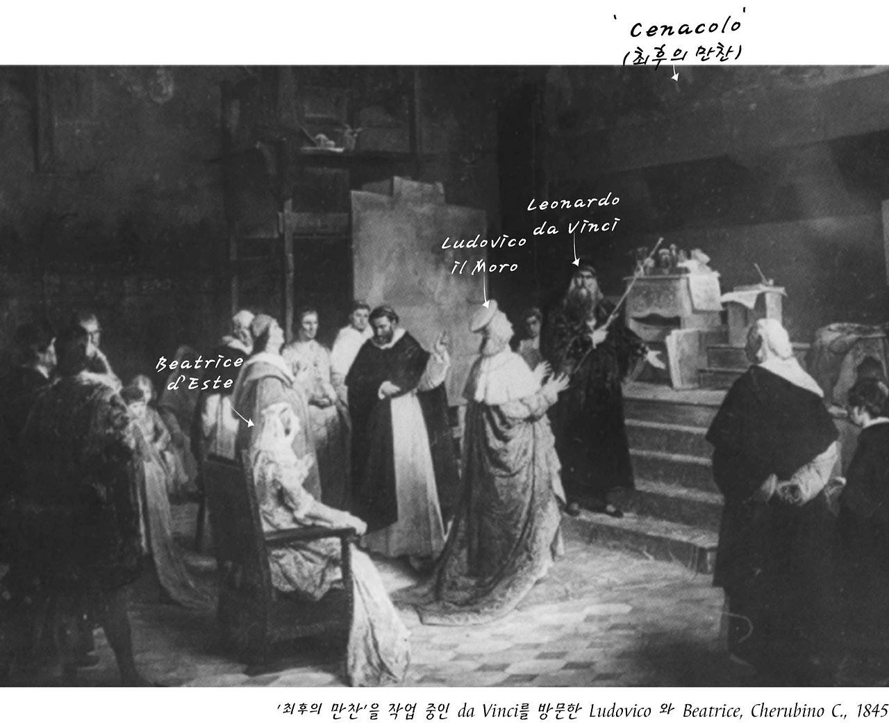 하지만 여유 있던 루도비코도 1488년 겨울 합법적인 공작이었던 조카 지안 갈라아초{Gian Galeazzo}가 결혼하고, 이듬해 2월 신부 이사벨라 다라고나가 밀라노에 도착하자 마음이 급해졌던지 부랴부랴 특사를 페라라로 보내 결혼을 위한 구체적인 논의를 시작합니다. 후계자가 있다면 자신이 밀라노의 공작이 될 가능성이 높았기 때문이죠.