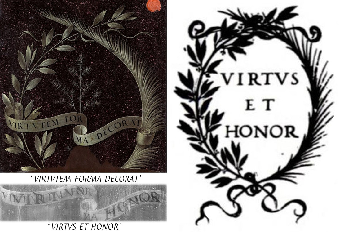 그림의 주인공을 지네브라로 추측하는 또 하나의 이유가 여기에 있다. 초상화 뒷면에는 엠블럼이 하나 그려져 있는데, 후대에 적외선 조사로 엠블럼 속에 숨겨진 글귀 'Virtus et Honor'를 발견하게 된다. 이는 바로 벰보의 모토였으며, 글귀를 감싸고 있는 월계수와 종려나무도 벰보의 상징이었다. 그러니까 이 초상화는 벰보가 남몰래 의뢰한 연인의 초상화일 확률이 높다.