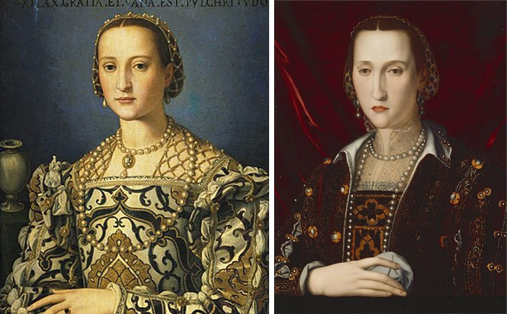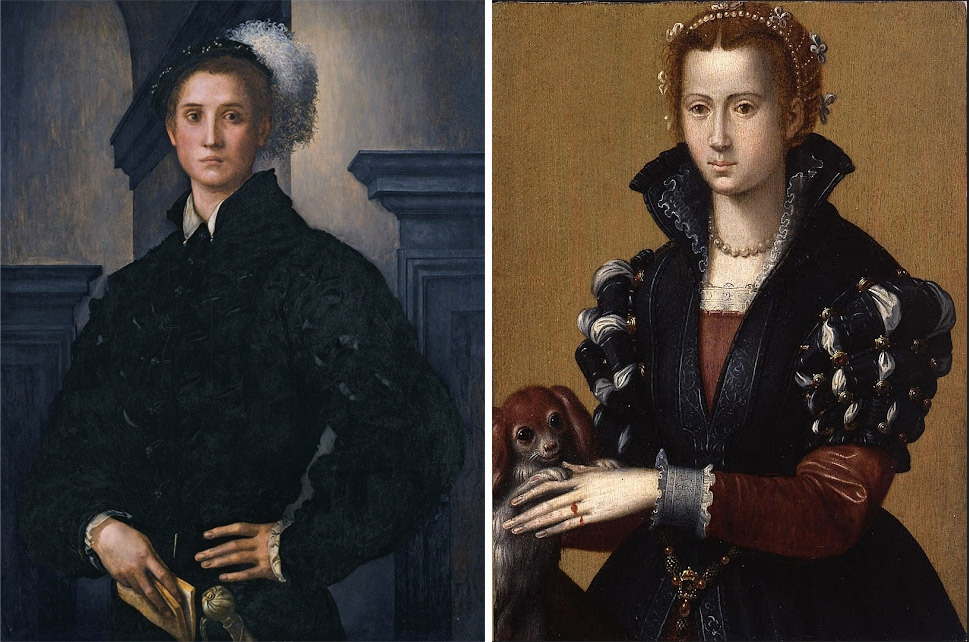 레오노르의 경우도 마찬가지였습니다. 그녀는 공식적인 행사에서 의도적으로 스페인 스타일을 고수하며 자신의 이미지를 만들었고, 강국에서 온 공작부인의 스타일은 널리 모방되었습니다. 이렇게 피렌체의 궁정 복장은 스페인풍의 영향력에 놓이게 됩니다.