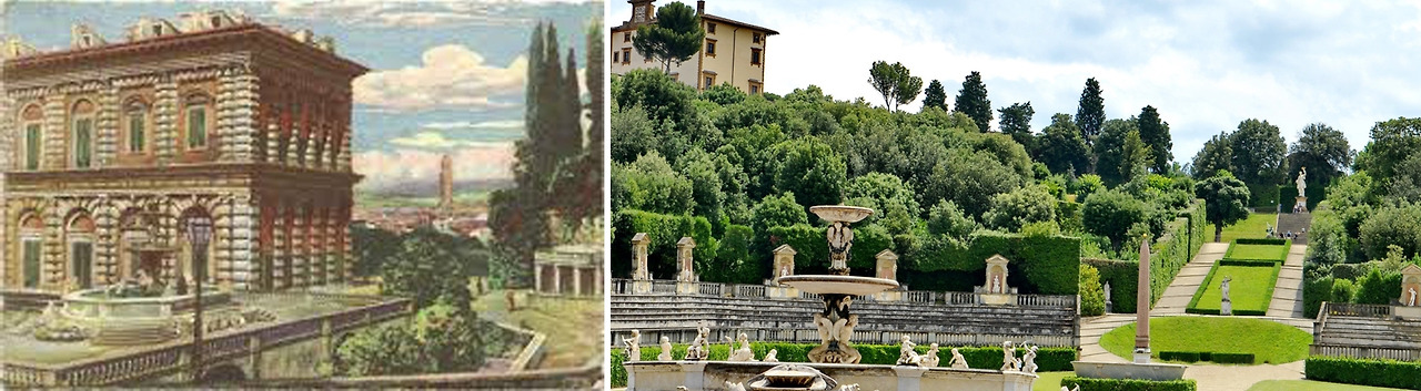 건강이 좋지 않았던 아이들이 도시 중심지보다는 야외의 자연에서 뛰어놀 수 있게 Pitti가문의 소유였던 피티 저 저택{Palazzo Pitti}를 구입하죠. 저택의 뒤 쪽엔, 우거진 지역을 가리키는 고대 명칭인 'de' Boboli'라 불리는 넓은 공간이 있었습니다. 공작 가족은 취향에 맞게 구조를 확장하며 새로운 저택에 어울리는 멋진 정원을 만드는 프로젝트에 착수했고, 여러 건축가들이 수년에 걸쳐 완성한 정원은 오늘날 이탈리아의 3대 정원으로 꼽히는 피렌체의 보볼리 정원{Giardino di Boboli}이 되었습니다.