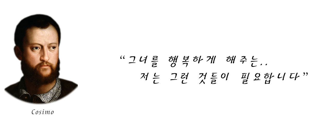메디치{Medici} 가문의 하위 가문에 속했던 그는 겨우 17세에 선대 공작의 갑작스러운 암살로 권력의 자리에 올랐고, 주변에는 어린 코시모 1세를 좌지우지하려는 자신의 이익에만 급급한 원로들로 가득 차 있었죠.