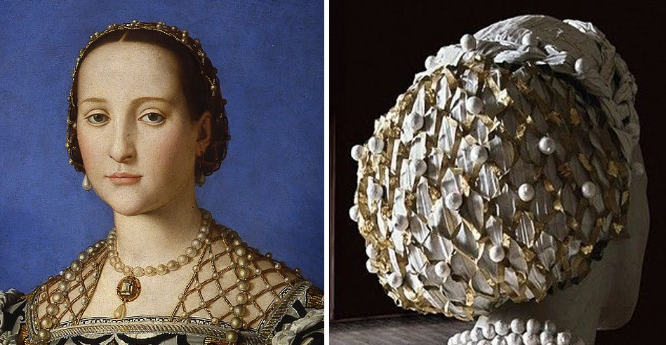 당시 피렌체에서는 펜던트가 매달려있는 귀걸이는 부도덕함을 의미했고 주로 창녀들이 착용하는 장식품이었습니다. 레오노르는 물방울형 진주 귀걸이를 애용했으며, 심지어 이중으로 귀걸이를 하는 등 본인만의 패션 스타일을 만들어갔죠.