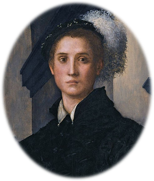 하여 23살의 아내와 세 살이 된 둘째 아들을 호화로운 드레스와 가문의 보석으로 화려하게 꾸며 화폭 앞에 세웠습니다. 메디치 가문의 정치적 재탄생과 미래 세대로 이어지는 영속성에 대한 메시지를 전달하고자 함이었습니다.