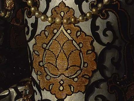 이 화려함의 극치를 달리는 드레스는 사실 오래도록 미술사학자들 사이에서 논쟁거리였습니다. 전통에 따르면 이 드레스는 레오노르의 사망 시 함께 무덤에 묻혔을 테지만 조사 때 드레스는 발견되지 않았고, 궁정 재산 목록에도 없었습니다. 다만 매우 유사한 천조각은 존재해 피렌체 박물관에 있죠.
