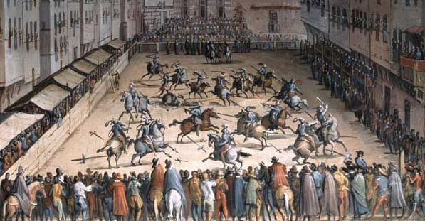 사람들은 당시 열린 조스트라{Giostra(마상 창 시합)}에서 그들이 원하는 두 스토리가 모두 담긴 드라마 한 편을 목격하게 되죠.