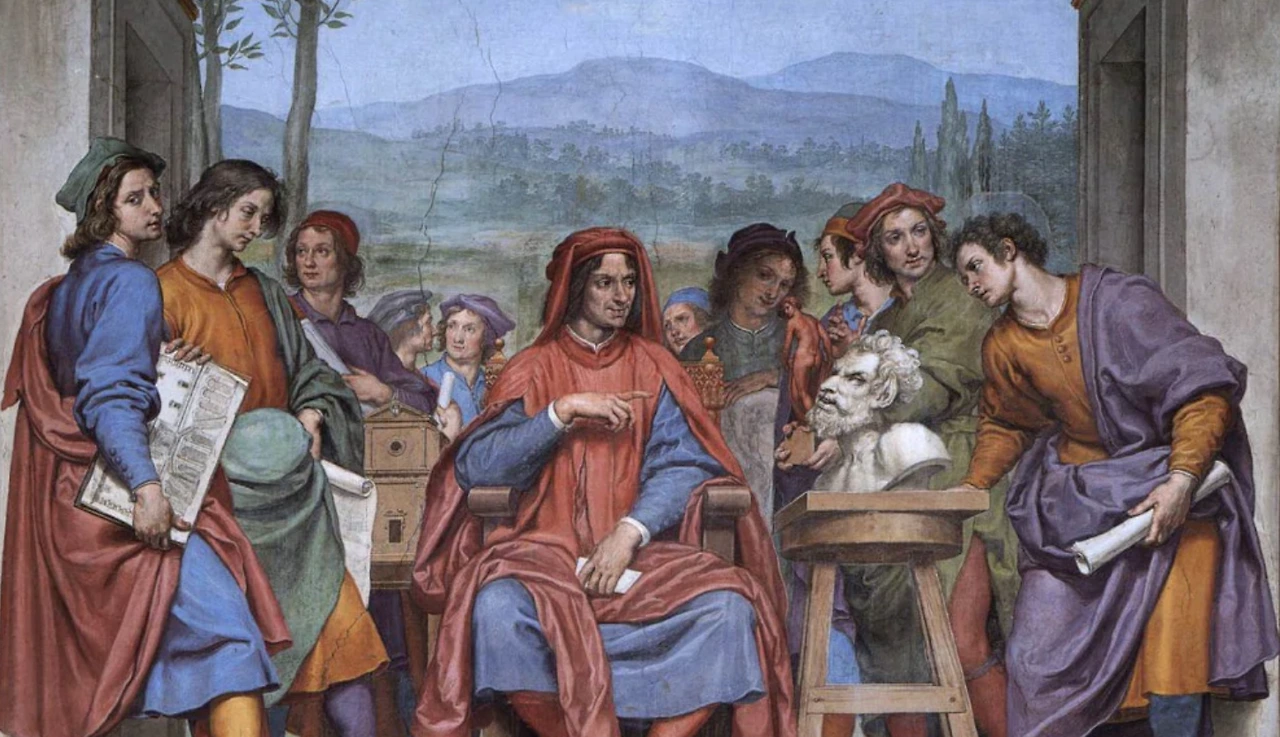 당대 최고의 예술가, 시인, 철학자 및 지식인들로 가득했던 로렌초의 궁정은 당시 신플라톤주의* 푹 빠져있었습니다. 로렌초는 피렌체를 고전 세계의 황금기로 다시 되돌려놓고 싶었습니다. 그들이 꿈꾸던 이상적인 세계였죠.