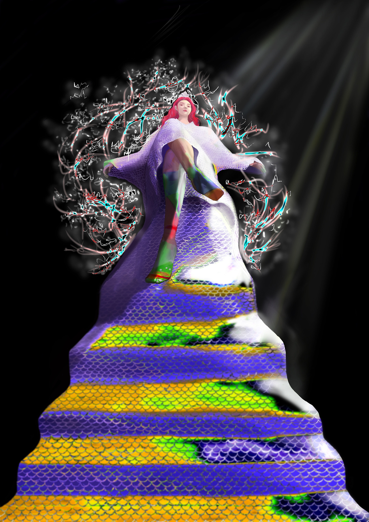 그 여자는 얼굴뿐만이 아니라 온 몸이 오색빛으로 얼룩덜룩 빛났다. 그녀는 내 몸을 보더니 말을 이었다.