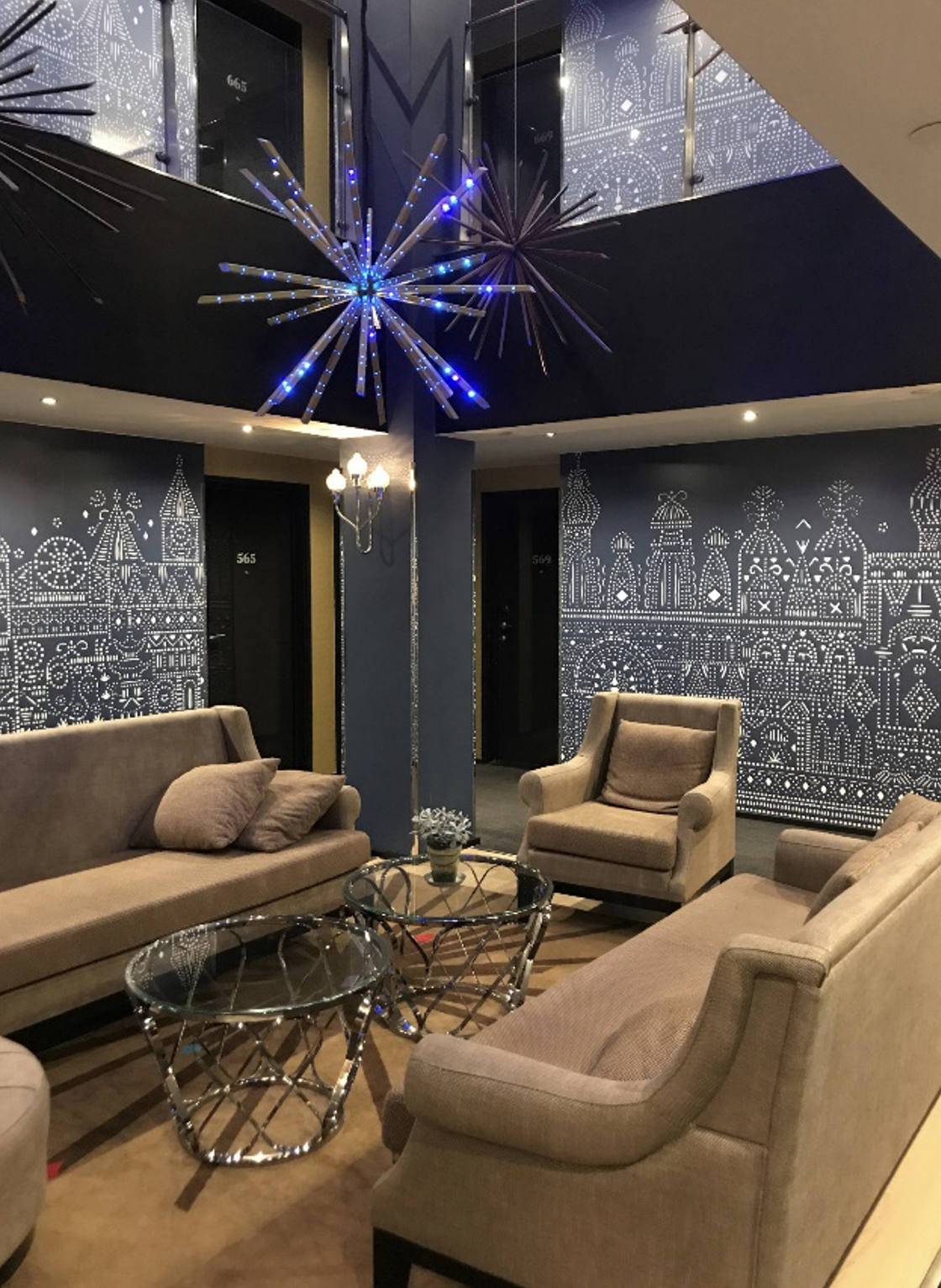 인터넷과 달리 실제 호텔 모습은 모스크바 성 바실리 대성당[4]처럼 보였다. 코펜하겐 최고의 유원지인 ‘티볼리’에서 이름을 따왔기 때문에 티볼리 공원의 유희 정신에 바치는 오마주라는 건 마지막 밤 티볼리 공원을 다녀오고서야 깨달았다. 호텔은 2개의 타워로 이루어진 대형 콤플렉스였는데 라스베가스급 대형 호텔이라 프런트에서 방까지 족히 3분은 걸어야 했다. 엘리베이터에서 내리고 나서도 그렇게 많이 걸어본 것은 처음이다. 호텔 측에서도 오죽했으면 복도에 쉬어 갈 수 있는 공간을 마련해 놓았다. 서울의 내 방에서부터 코펜하겐의 호텔방까지 참으로 멀고도 먼 길이었다.