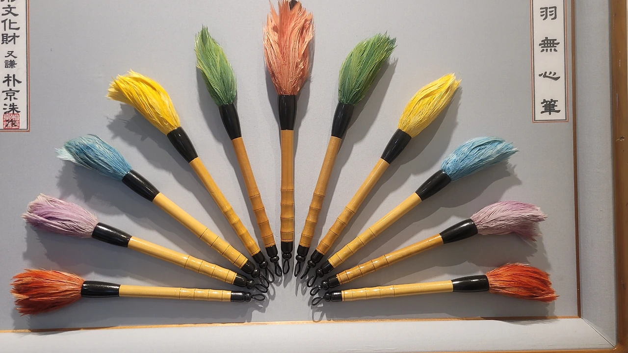 네 2017년 춘천에 개관한 ‘붓 이야기 박물관’이라고 하는 곳인데요. 저도 최근에 다녀왔는데 청취자분들께도 꼭 추천을 드리고 싶은 박물관 중 하나입니다. 특히 붓 이야기 박물관에서만 볼 수 있는 특별한 붓을 추천드리고 싶은데요. 박경수 필장님께서 국내 최초로 기록 속에만 존재했던 닭의 털로 만든 계모필을 복원하시는 데 성공하셔서 국내유일의 다양한 색깔의 계모필을 감상하시는 것이 포인트입니다. 이 깃털붓을 복원하시게 된 계기도 굉장히 특별합니다 "과거 제가 아끼던 앵무새가 죽었는데, 그 새를 기리고 간직할 방법이 없을까 고민했다어요. 아름다운 깃털을 가진 앵무새였기에 그 깃털로 붓을 만들면 의미가 있겠다 싶어 기르던 앵무새 깃털붓을 만들었지요" 이를 계기로 전설로 남을 뻔했던 계모필의 복원에도 성공하셨다고 합니다.