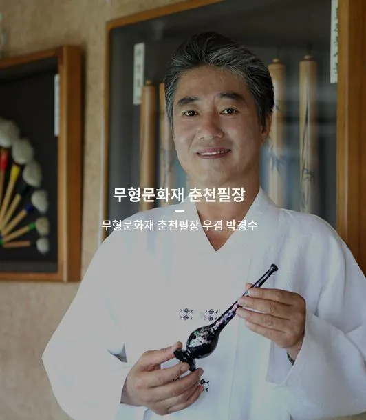 이 여덟 분 중에 가장 기억에 남는 필장님이 계시는데요. 춘천에서 3대째 붓을 만들고 계신 박경수 명장님이십니다. 박경수 명장님께서는 아버지로부터 전수받은 노하우를 토대로 1974년부터 전통 붓을 제작하고 계시고 박 필장의 아들들도 무형문화재 춘천필장 이수자로 아버지와 같은 길을 걷고 있습니다.