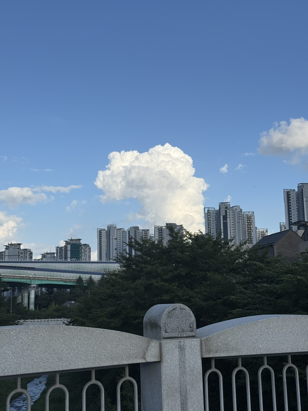 필라테스를 하고 오는 길에, 파란 하늘에 동글동글하게 피어오르는 구름이 귀여워 순간을 기록했다. 파란 하늘과 흰 구름은 당연한 듯 당연하지 않다. 비가 많이 내린 날의 구름은 더욱 솜사탕과 닮았다. 먹고 나면 온통 손이 끈적끈적해지던 하얀 솜사탕.