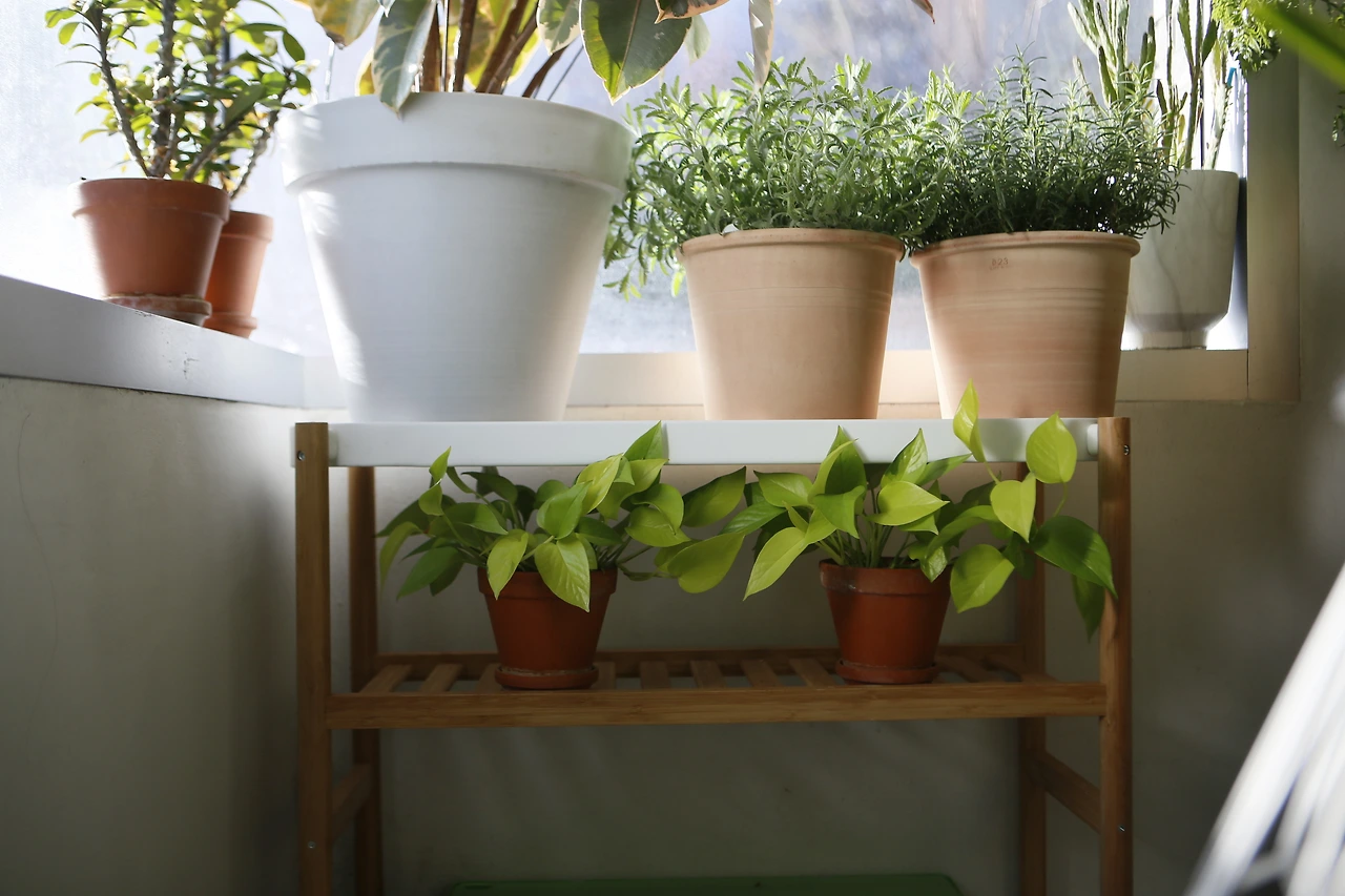 난방을 구동하는 계절 특성상 주의할 점이 있어요. 화분이 바닥에 바로 맞닿아 있다면 바닥과 화분 사이에 공간을 띄워 주세요. 화분받침이 있다고 해도 바닥의 온기가 뿌리로 전달되면 썩을 수 있어요. 물받이가 있는 화분 받침을 사용하는 것도 한 방법이고, 스툴 위나 테이블 위에 올려 두어도 좋습니다. 화분받침이 접시 형태라면 돌을 깔아 바닥면에서 띄워줍니다. 실내공기정화식물은 뿌리와 뿌리의 미생물이 호흡이 원활할수록 공기 정화 효과가 크니 통풍이 잘 되도록 신경 써 주세요.