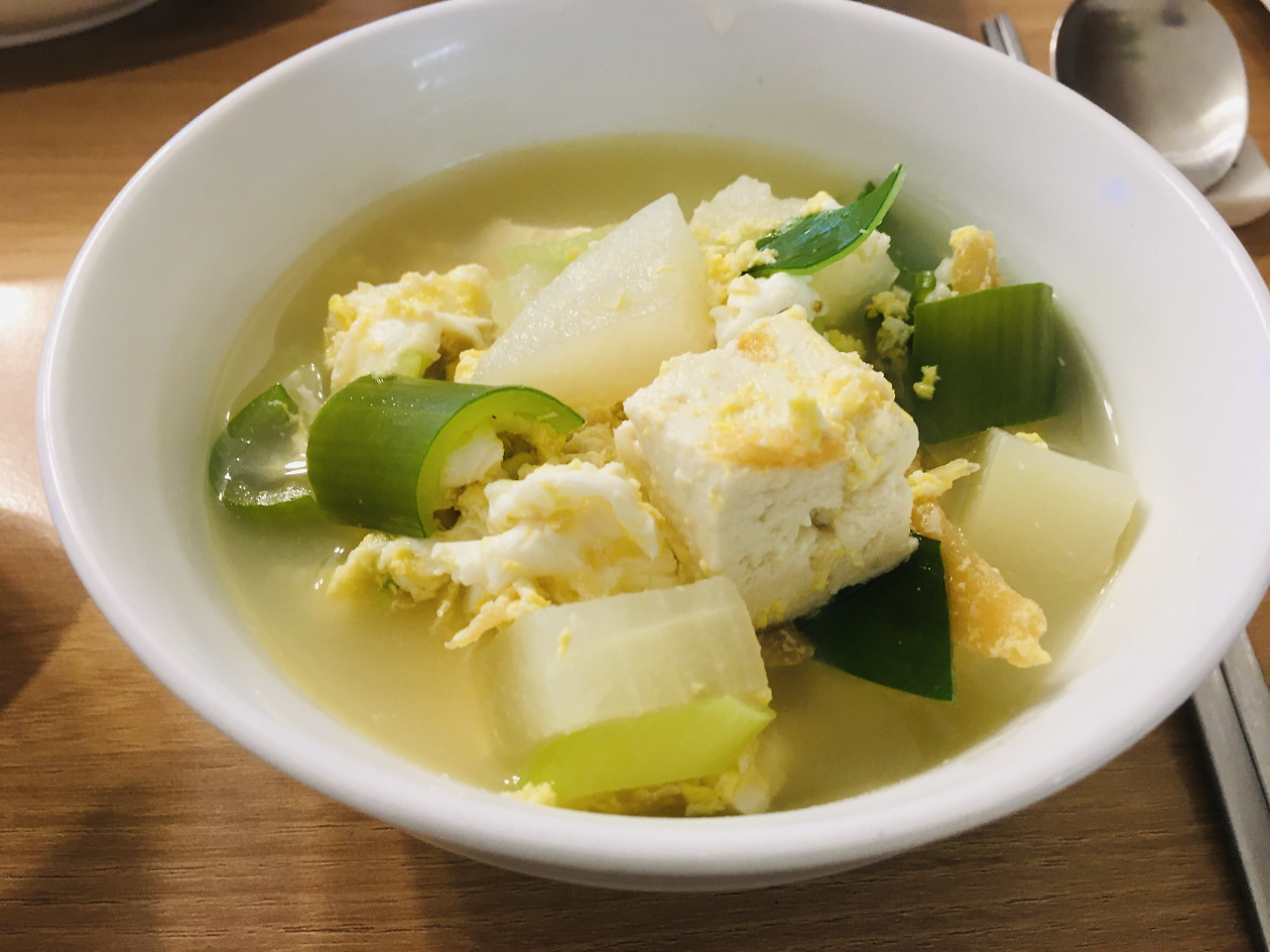 포카에게 줄 분량을 건진 후에 간을 해줬다. 간장 한 숟가락으로 풍미를 내주고, 진짜 간은 새우젓으로 했다. 간을 하는 목적도 있지만 새우젓을 넣어주면 감칠맛을 낼 수 있어서 국물에 깊이가 생긴다. 다진 마늘로 국물의 비릿함을 잡아주고 휘휘 풀은 계란을 원을 그리며 국물에 넣어주면 끝이다. 아, 고추와 파를 마지막에 넣어줘서 향을 내주면 훨씬 좋다.