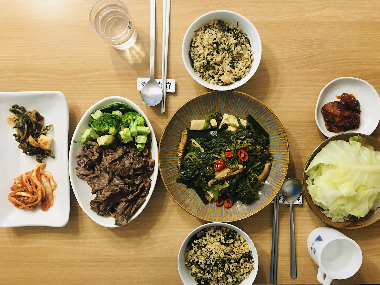 고민할 것도 없이 나는 식물성 칼슘 위주로 식단을 다시 짰다. 말린 곤드레를 강원도 직송으로 샀고, 재래시장에서 손질된 고구마 줄기를 사거나 염장된 톳을 종종 구입해 먹었다. ‘너 없이도 잘 살 거야’라며 안녕을 고했던 미역도 냉장고 선반에서 꺼내 오이 미역냉국을 해 먹었다. 칼슘 관련 채소나 해조류가 정 없으면 김이라도 먹었다. 여러 칼슘 식단 중 내가 애정 하는 음식은 곤드레밥과 아욱 표고버섯 조림이었다.