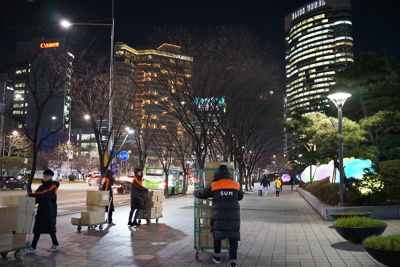 단지 앞에 의외로 김밥 천국이 있어요. 카페는 없어요(지금은 생겼겠죠). 공복에 아메리카노 한 잔이 삶의 낙이었던 때니까요. 커피 머신을 어떻게 쓰는 건지 모르겠는 거예요. 마침 후배놈은 자고 있고. 대로변으로 나와서 길 건너 파리 바게트에서 어렵게 아메리카노 한 잔을 마셔요. 추운 겨울에 가볍게 입고 나와서, 그 길이 너무 길고, 춥게 느껴졌어요. 그러고 보니까 부자 동네에서 며칠 씩은 살아 봤네요. 동부 이촌동에서도, 압구정 현대 아파트에서도, 그리고 뉴욕 맨해튼에서도요. 아, 뉴욕의 고급 주택가 롱아일랜드에서도 살아 봤어요. 다행인 게 부촌에 대한 로망이 없나 봐요. 일단 걷는 재미가 없어요. 운전면허조차 없으니, 드라이브도 못 해요. 길에서 어묵 몇 개를 충동적으로 먹을 수 있기를 하나요? 몸을 지질 만만한 목욕탕이 있기를 하나요(신기하게도 근처에