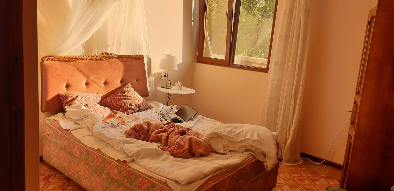 없는 게 없다. 주방을 지나면 식탁이다. 말도 안 되게 절묘하다. 창가에 바짝 붙어서, 창으로 오는 모든 바람과 밝음을 빨아들인다. 일어나자마자 차 한 잔 들고 무조건 앉아야 하고, 밥 먹을 때도 무조건 앉아야 한다. 노트북으로 영화를 봐야 하고, 끙끙 나의 글을 써야 한다. 여기에서, 이 탁자에서... 조잘조잘 새소리는 기본값이다. 빈틈없이 조잘조잘. 에어비엔비로 빌린 방 중에 가장 저렴하다. 가장 밝고, 가장 그릇이 많고, 냄비가 많고, 찻잔이 많다. 취소하려던 방이었다. 예레반을 다녀간 여행자가 추천해 준 방으로 가려고 했다. 수수료를 절반이나 토해내야 해서, 그냥 왔다. 어쩔 수 없이 왔다.
