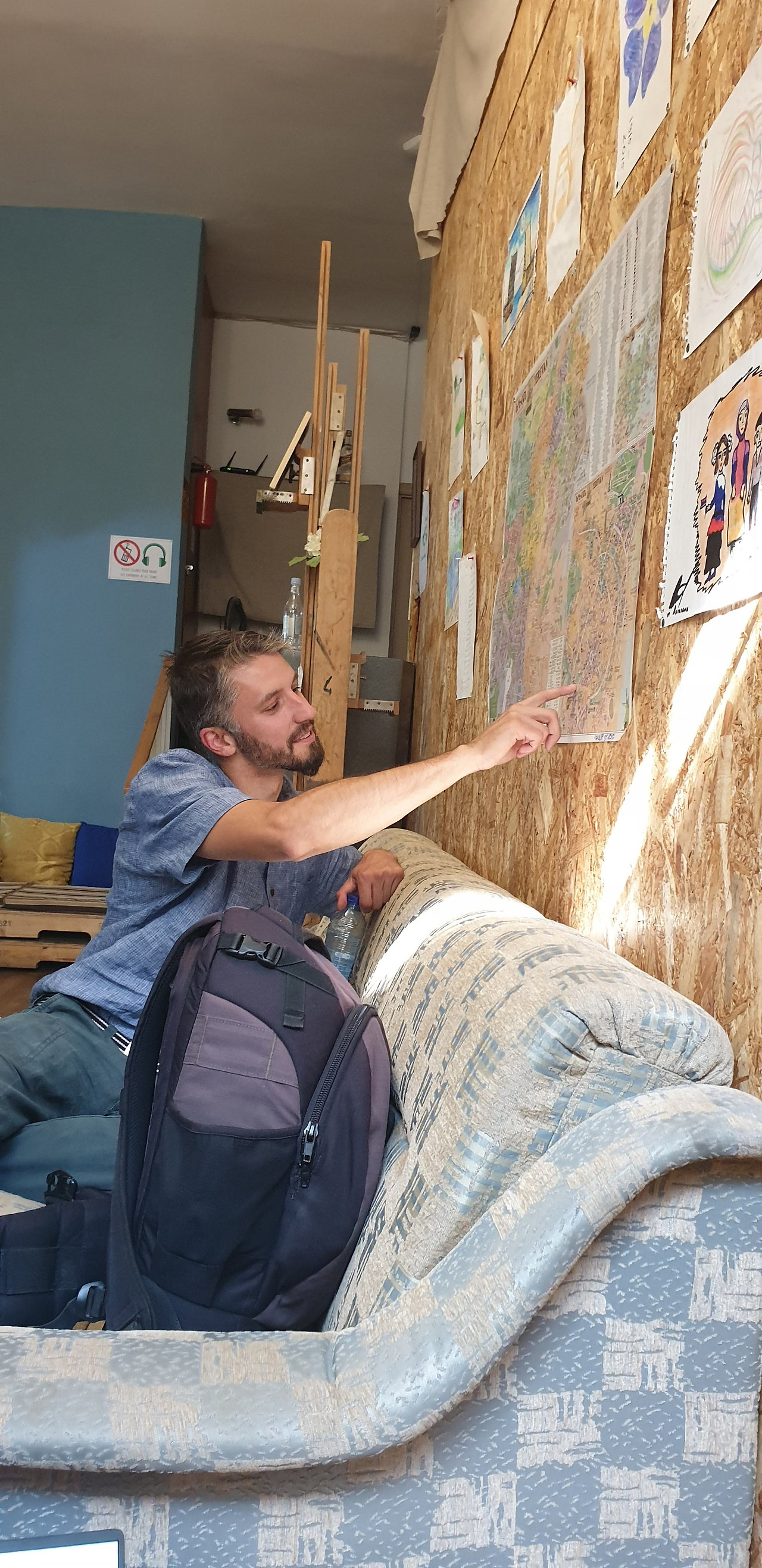 호스텔 벽에 붙은 지도를 찬찬히 보네요.