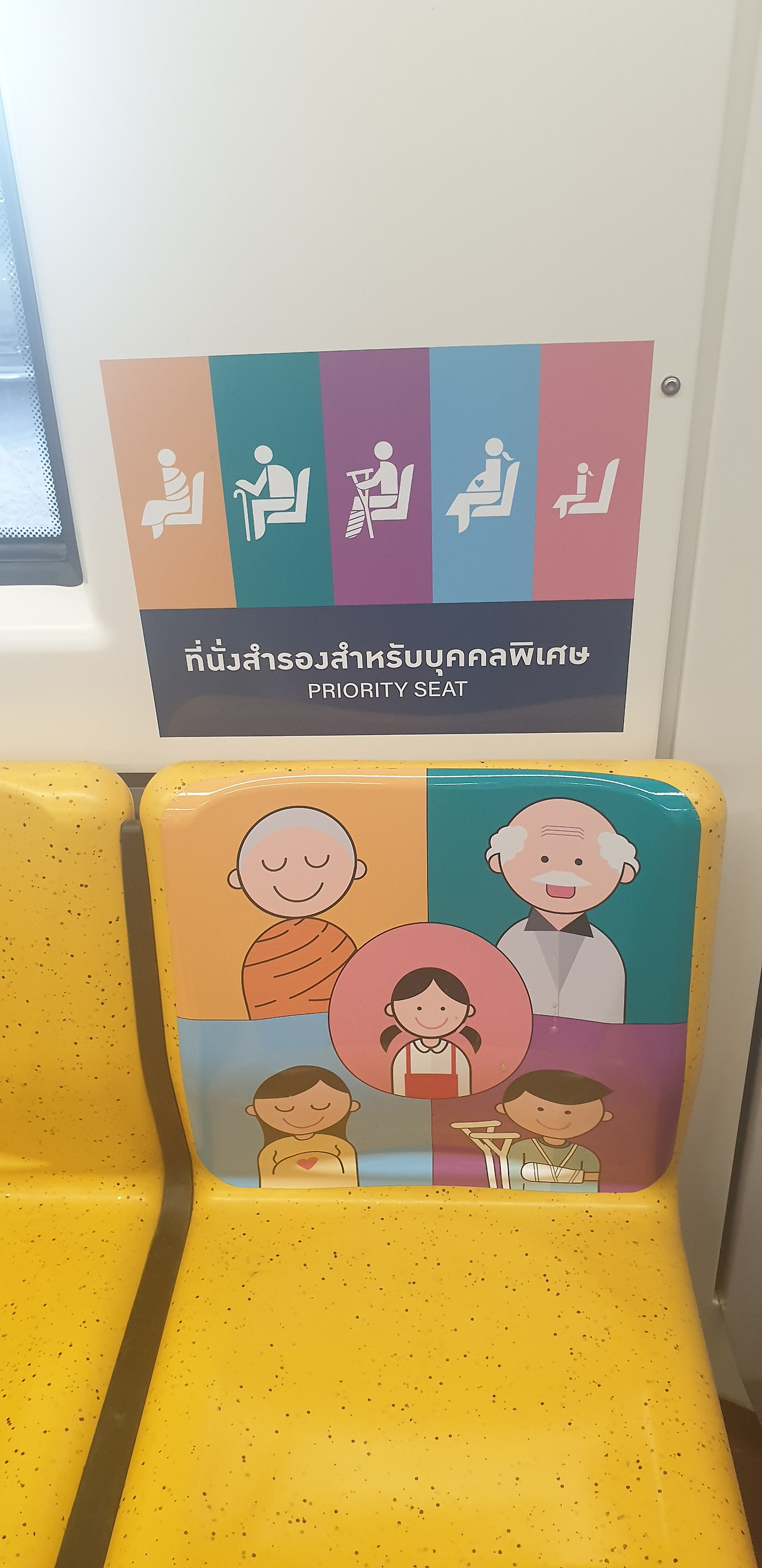 태국 지상철(BTS) 배려석. 스님도 여기 앉으시면 돼요. 태국은 사실 귀여움이에요. 태국 여행의 포인트죠. 잘 모르시더라고요. 색감도, 생각도, 그림도 귀요미로 꽉 찬 태국이옵니다. 구석구석 잘 찾아보셔요.