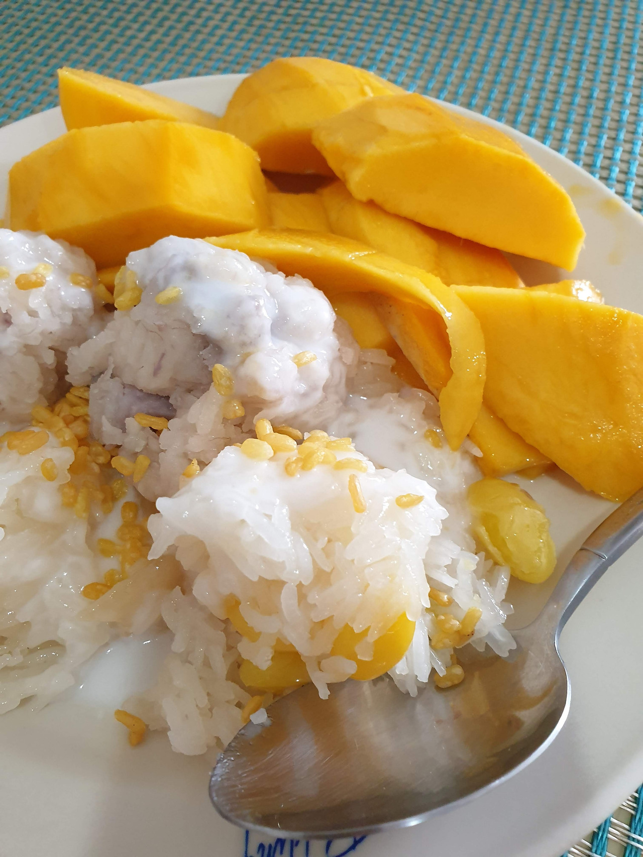 카오 - 쌀, 니야오 - 찰진, 마무앙 - 망고. 네, 망고 찹쌀밥입니다.