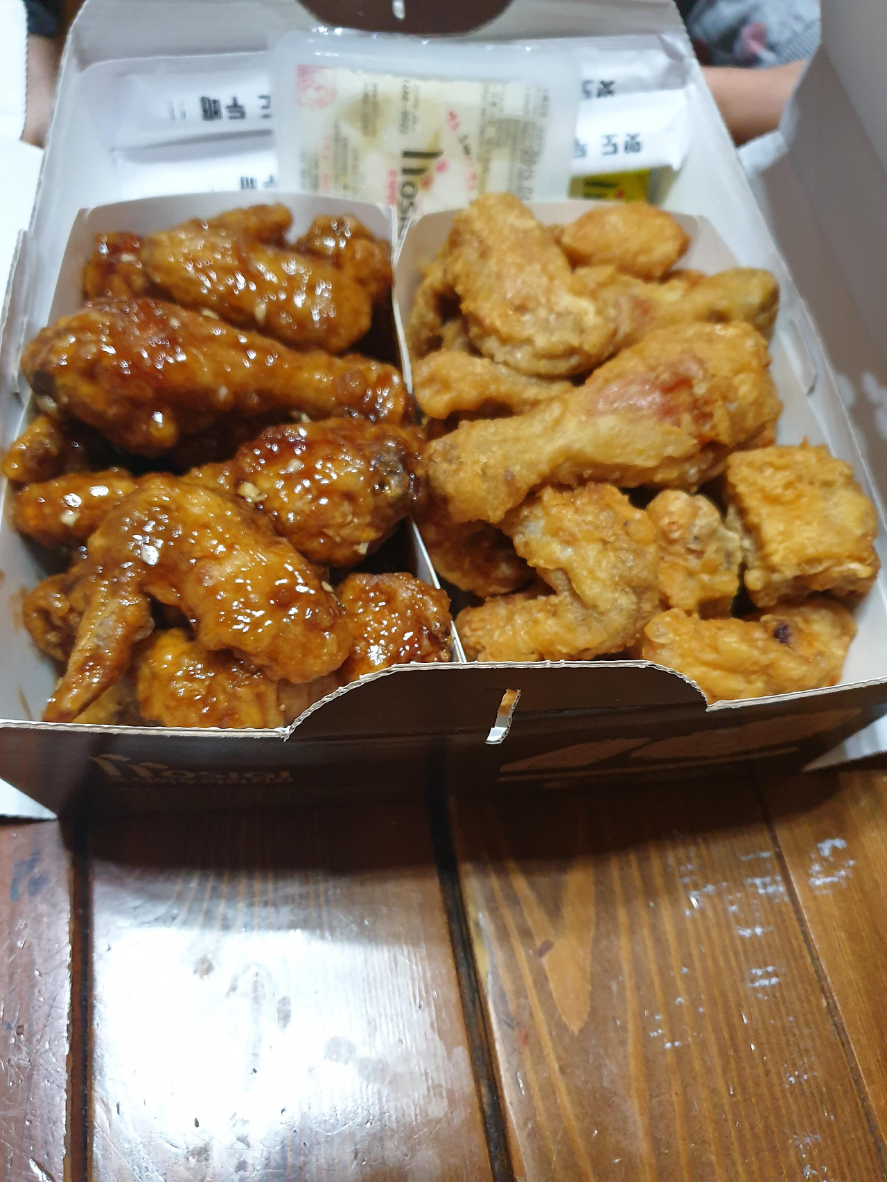 인기는 블랙 알리오가 더 많은 것 같더라고요. 하지만 제 취향은 단연 고추 마요입니다. 안 먹어 봐도 알아요. 저는 마요네즈 성애자니까요. 어떻게 프라다를 베낀 치킨이 나올 수가 있을까요? 명품을 흉내 낸 이 찬란한 B급 감성은 뭔가요? 혼란스러운 와중에 포장은 대놓고 고급스럽더군요. B급 감성이 갈 곳을 잃은 느낌이네요. 이름만 신선하고, 내용물이 별로면 잠깐 반짝하고 말았겠죠. 여전히 주문조차 어렵다면서요? 치킨은 더스트백에 담아 주네요? 이미 포화상태인 치킨업에 뛰어들려면 이 정도 아이디어는 있어야 하나 봐요. 오븐에 한 번, 기름에 한 번 그렇게 두 번 익힌 치킨이더라고요. 튀김기와 오븐을 다 갖추고 장사를 한다는 건가요? 그래서 살이 퍽퍽하지 않고 겁나 부드럽다면서요? 소비자 입장에선 이런 치킨을 어디서 먹어 보겠어요? 오븐에 굽고, 튀김기에 튀긴 그런 치킨이 세상에 존재하는군요. 한국은 진짜 위대한 나라 맞습니다.