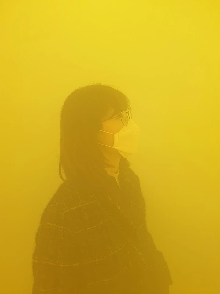 영국 출신 앤 베로니카 얀센스 작가의 'CONNECT, BTS' 서울 전시회를 다녀온 적이 있다. 아래 사진은 전시회에서 내가 경험한 <그린, 옐로, 핑크>라는 작품이다. 공간에 초록색, 노란색, 분홍색 인공 안개를 넣어두고 관객이 그 공간 안에 들어가 안개를 느끼며 걷는 것까지가 작품이었다. 한 발짝 내딛을 때마다 나를 둘러싼 공기의 색이 달라졌다. 온몸으로 낯설었지만 신선했다.