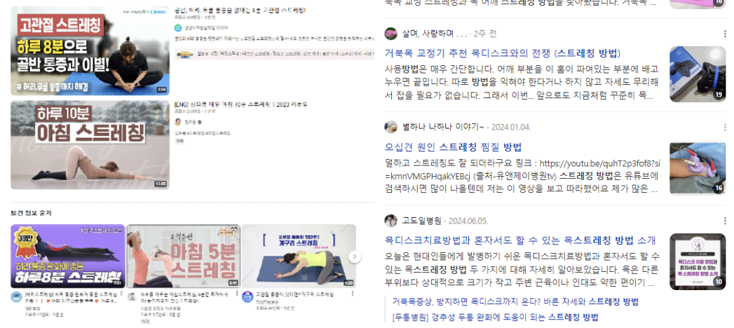 Youtube와 네이버 블로그의 스트레칭 관련 콘텐츠