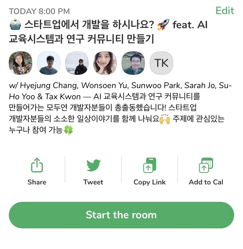 2월 18일 목요일, 모두연 개발자분들이 총출동하는 특별한 시간이 클럽하우스에서 마련되었는데요. AI 혁신학교 아이펠(AIFFEL)에서 교육관리시스템을 만드는 개발팀과, 모두연 홈페이지를 개발하는 온라인 개발팀 분들이 모두 참석해서 스타트업 개발자의 희로애락을 함께 얘기하는 시간이었어요.