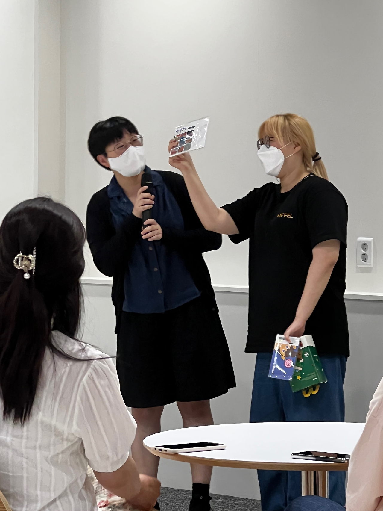 모두의연구소의 슬로건은 'Share Value, Grow Together'입니다. 사내 이벤트 안에서도 함께 가치를 나눕니다. '모두의 나눔'은 집에서 사용하지 않고 있지만 소중한 물건을 갖고 와서 팸들에게 나누는 행사였습니다. 물건과 관련된 본인의 사연을 소개하고, 기증하는 물건을 받고 싶어 하는 사람들의 이야기도 들어봅니다. 안 쓰는 물건이 아닌 이야기를 담고 있는 물건이 되어 필요로 하는 사람에게 새로운 가치를 함께 나눕니다.