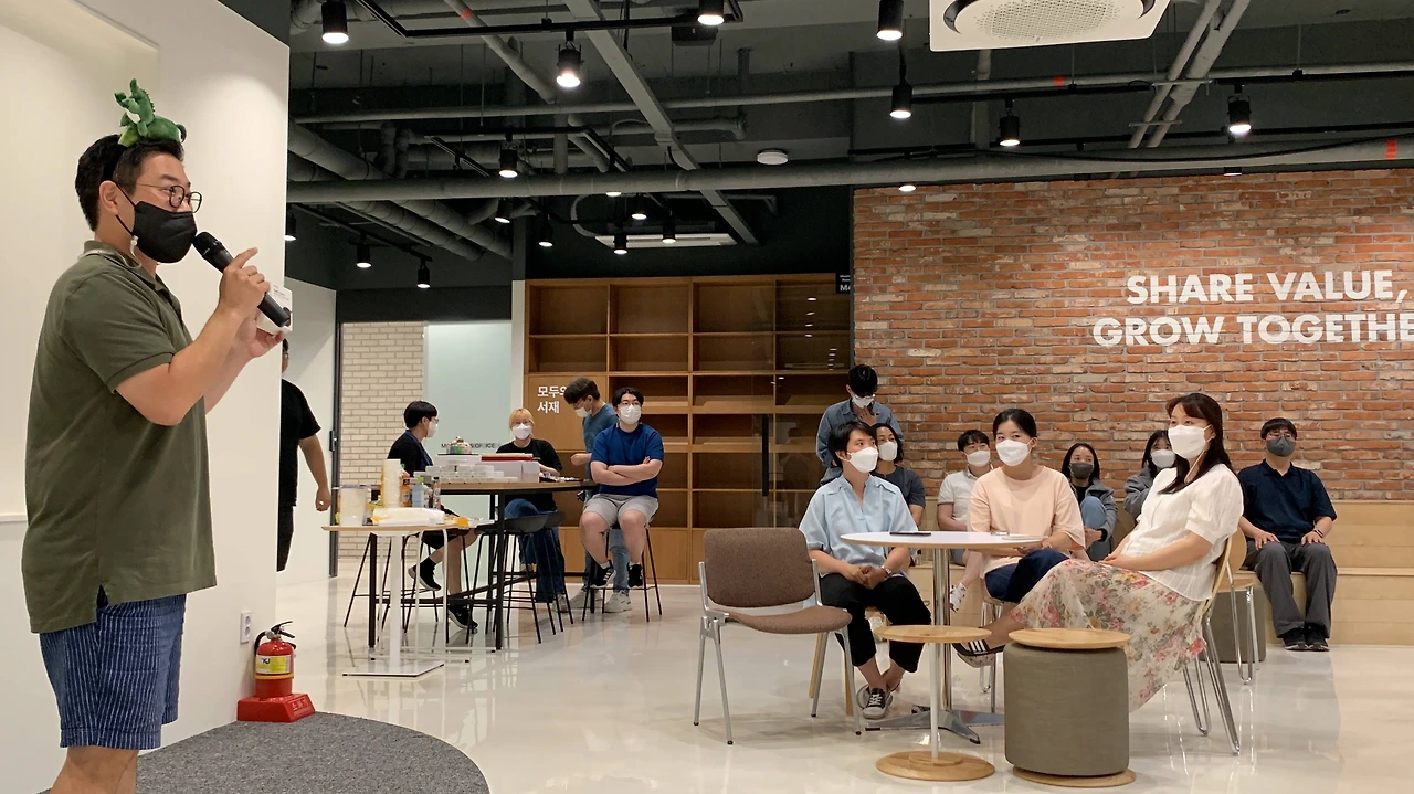 모두의연구소에는 여름방학, 겨울방학이 있습니다! 무더운 한여름에는 한 주 쉬면서 리프레시하는 시간을 갖게 되죠. 새로운 비움이 또 다른 채움으로 만들어지는 시간입니다. 이번 여름방학이 시작되기 전, '모두의연구소, 새로운 시작'이라는 사내 행사가 진행되었습니다. 7월 말 오픈한 모두의연구소 신강남캠퍼스 공간에 모여 여름 방학이 시작되기 전 새로운 시작을 함께 축하하는 자리였죠. 모두의연구소에서 진행된 행사를 통해 모두연만의 문화를 소개해봅니다 :)
