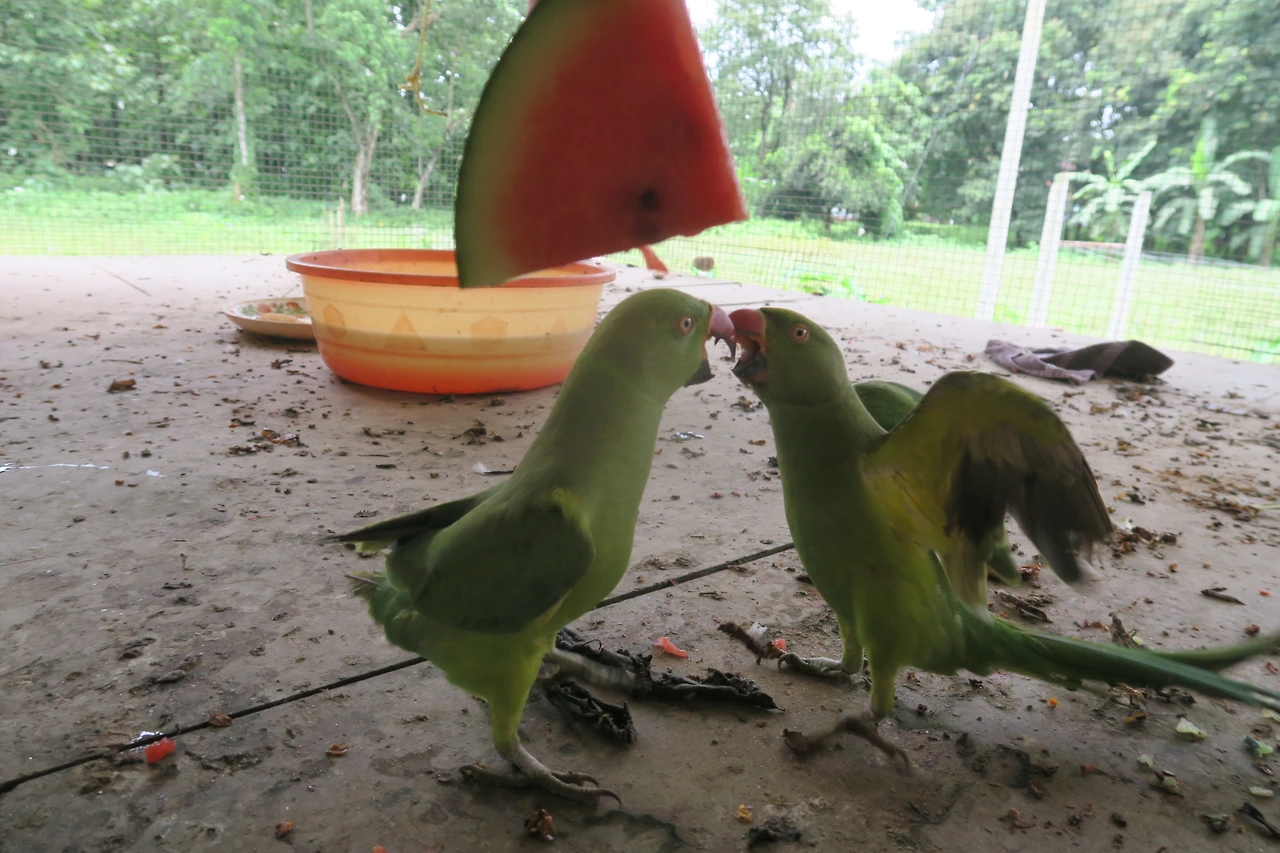 미투를 위해 안방 창문과 연결해서 작지 않은 새장을 만들었다. 미투는 자기 방이 꽤나 마음에 드는 듯 했다. 아이들은 매일 마다 바나나, 망고, 토마토 등 집안에 있는 과일들을 가져다 주기 시작했다.