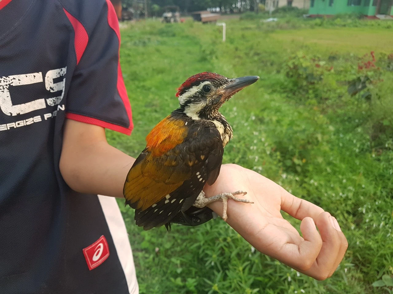 꽤 자란 아기 딱따구리였다. 털도 제법 다 자랐고 덩치도 작지 않았다. 그저 아직까지 잘 서있지 못하고 날지 못한다 뿐이었지 겉모습은 거의 어른이었다.
