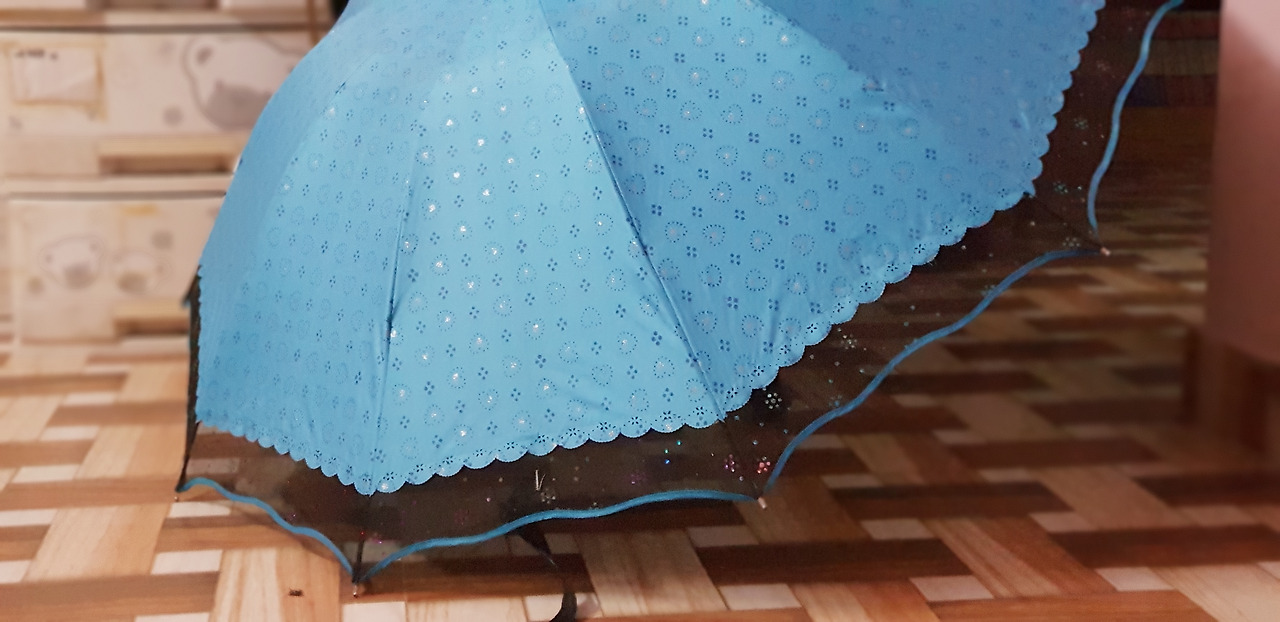 그리고 양산을 넓게 폈다. 반짝이는 하늘색에 마지막 부분이 검정 망으로 마무리되어 있는 양산이었다. 인도의 뜨거운 땡볕에 얼굴이 타들어간다고 호들갑을 떨며 거무칙칙한 우산을 쓰고 다니는 나를 위해 남편이 사준 선물이었다. 양산대와 천을 맞대어 놓고 조심스럽게 꿰맸다. 바늘이 뚫고 지나간 천 사이로 작은 빛줄기가 들어올지도 모르지만 시장에 앉아서 우산을 고치시는 인도 우산 장인이 된 듯한 기분으로 우산 수리를 마무리했다.