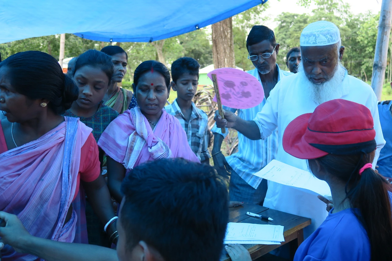 나지막하게 서 있는 건물 하나를 의지해서 또 대나무를 세워서 만든 파란 천막은 사람들의 그늘막이 되어 주고 비를 피할 수 있는 장소가 되었다. 어린아이로부터 할아버지 까지 힌두교, 모슬렘교, 기독교, 모두가 모였다.