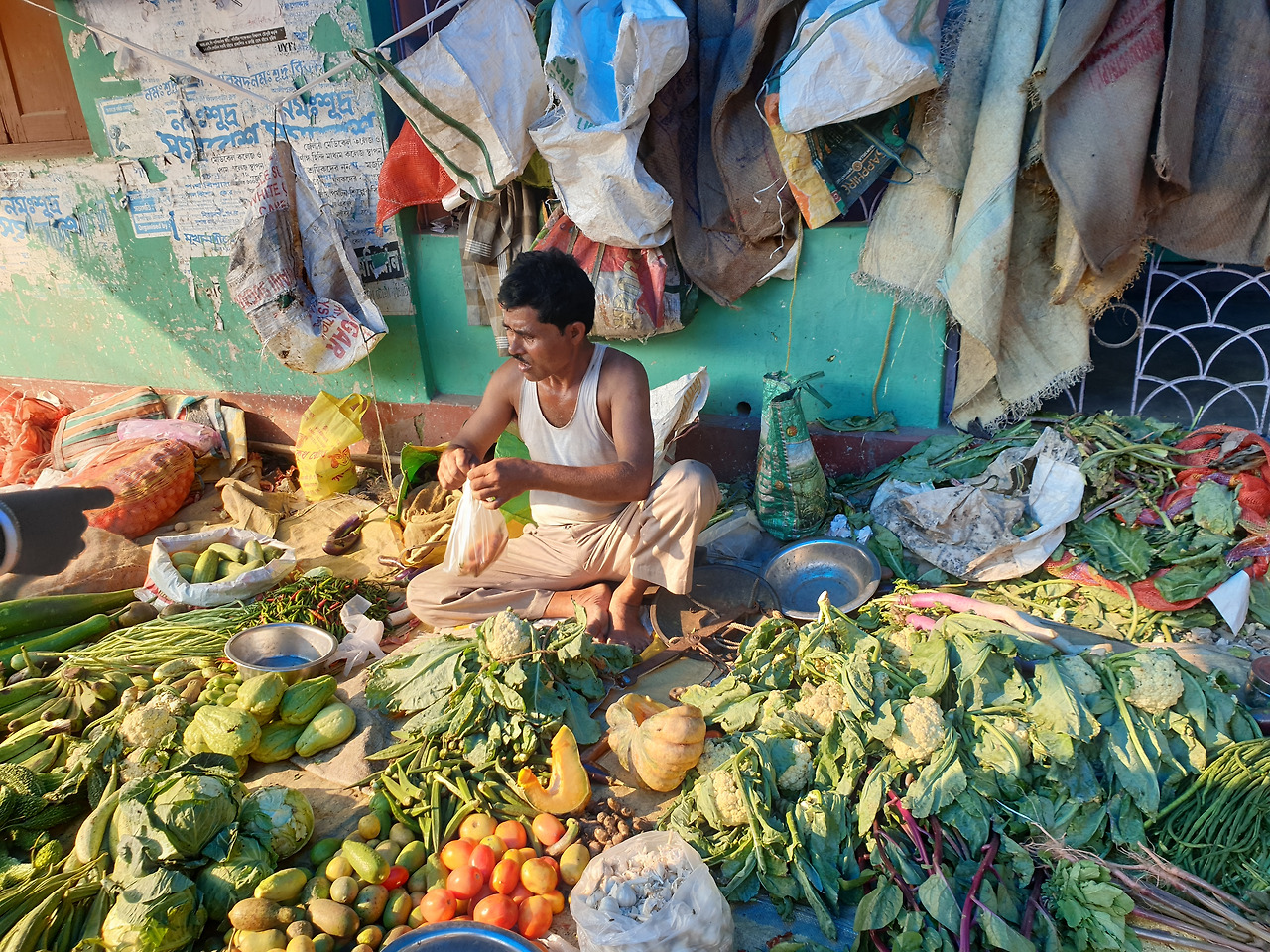 나는 항상 가는 야채 가게 아저씨에게 갔다. 야채가게라고 해 봤자 천막 아래에서 야채를 잔뜩 펼쳐 놓고 파는 곳이었다. 가지에는 벌레가 없는지 감자는 싱싱한지 나는 꼼꼼하게 체크하며 야채를 사고 있었다. 쭈그리고 앉아서 야채를 고르는데 누군가 나를 툭 친다.