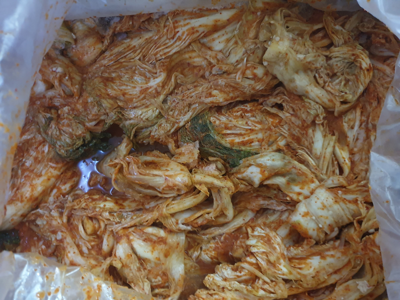 김치를 많이 넣으려고 김치냉장고에 김치통 대신에 비닐을 깔았다