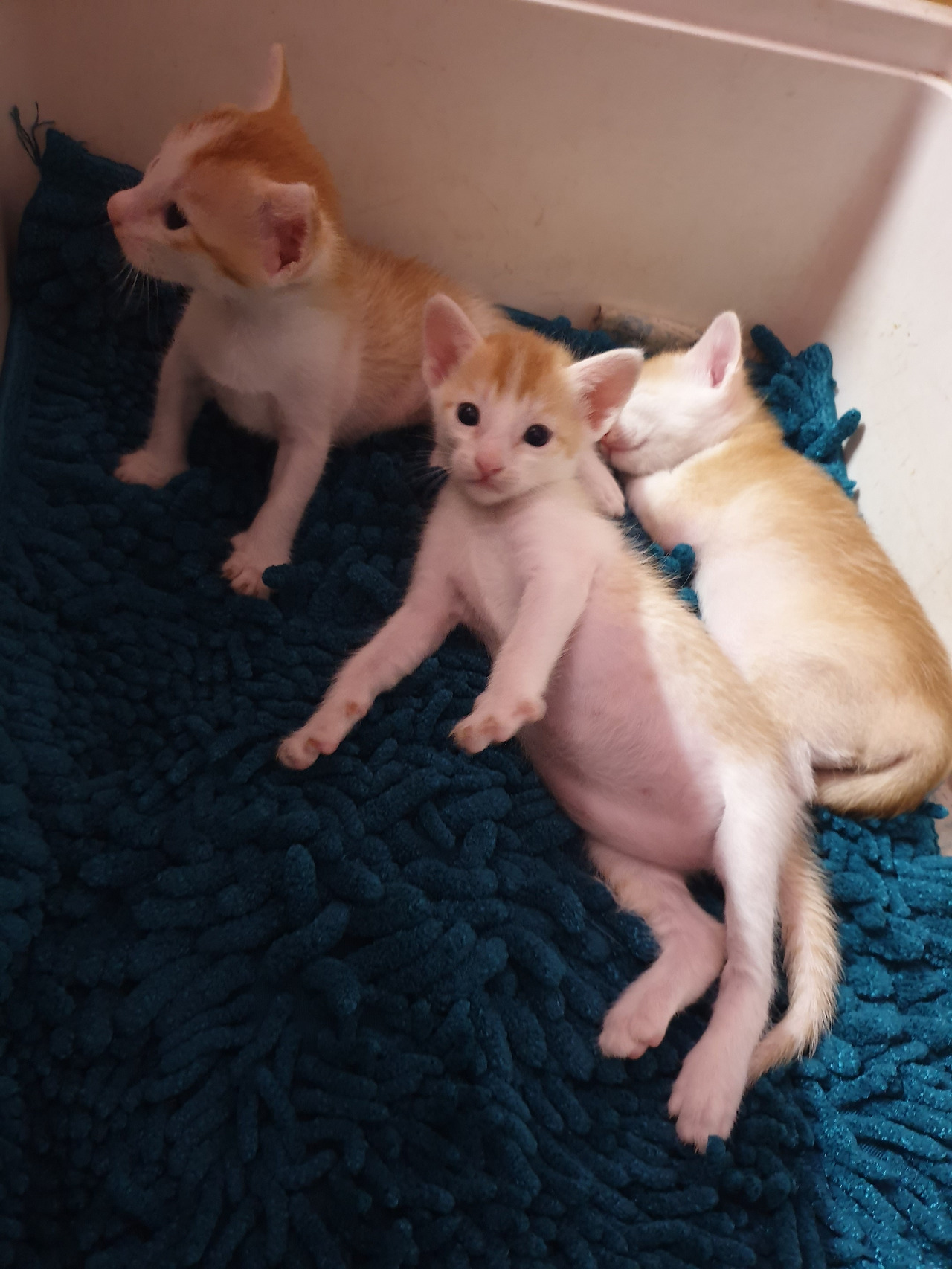*새끼들이 태어난지 며칠 지나지도 않아 가장 약했던 아기 고양이 한마리가 죽었습니다. 그래도 남은 세 마리의 아기 고양이들은 건강하게 잘 크고 있네요.