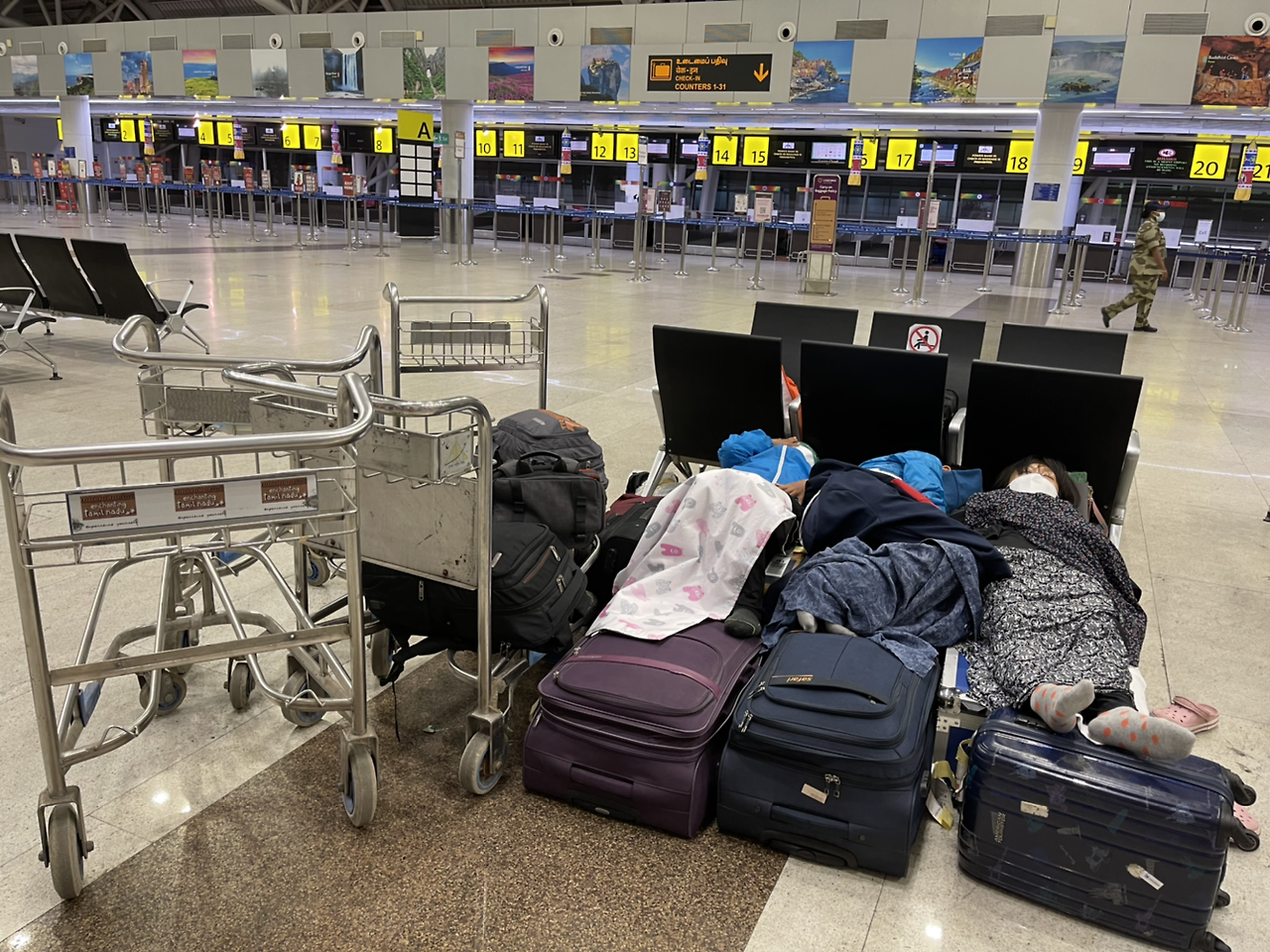 공항 의자에 짐을 내려놓고 짐을 간이침대 삼아 아이들을 재운 후 나는 남편에게 물었다.