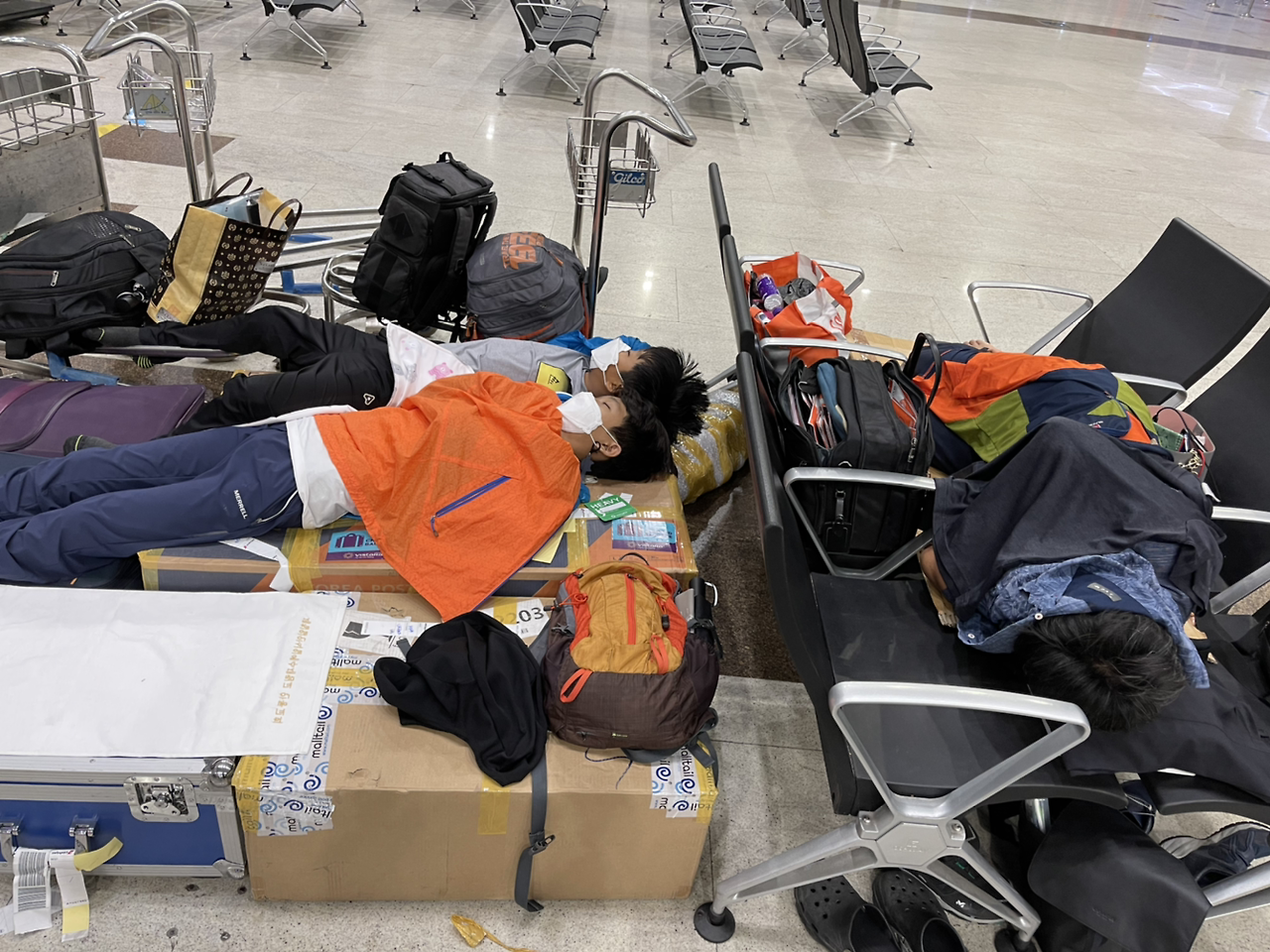 정 선생님은 분주하게 핸드폰으로 우리가 타고 온 항공 매니저와 통화를 했다.