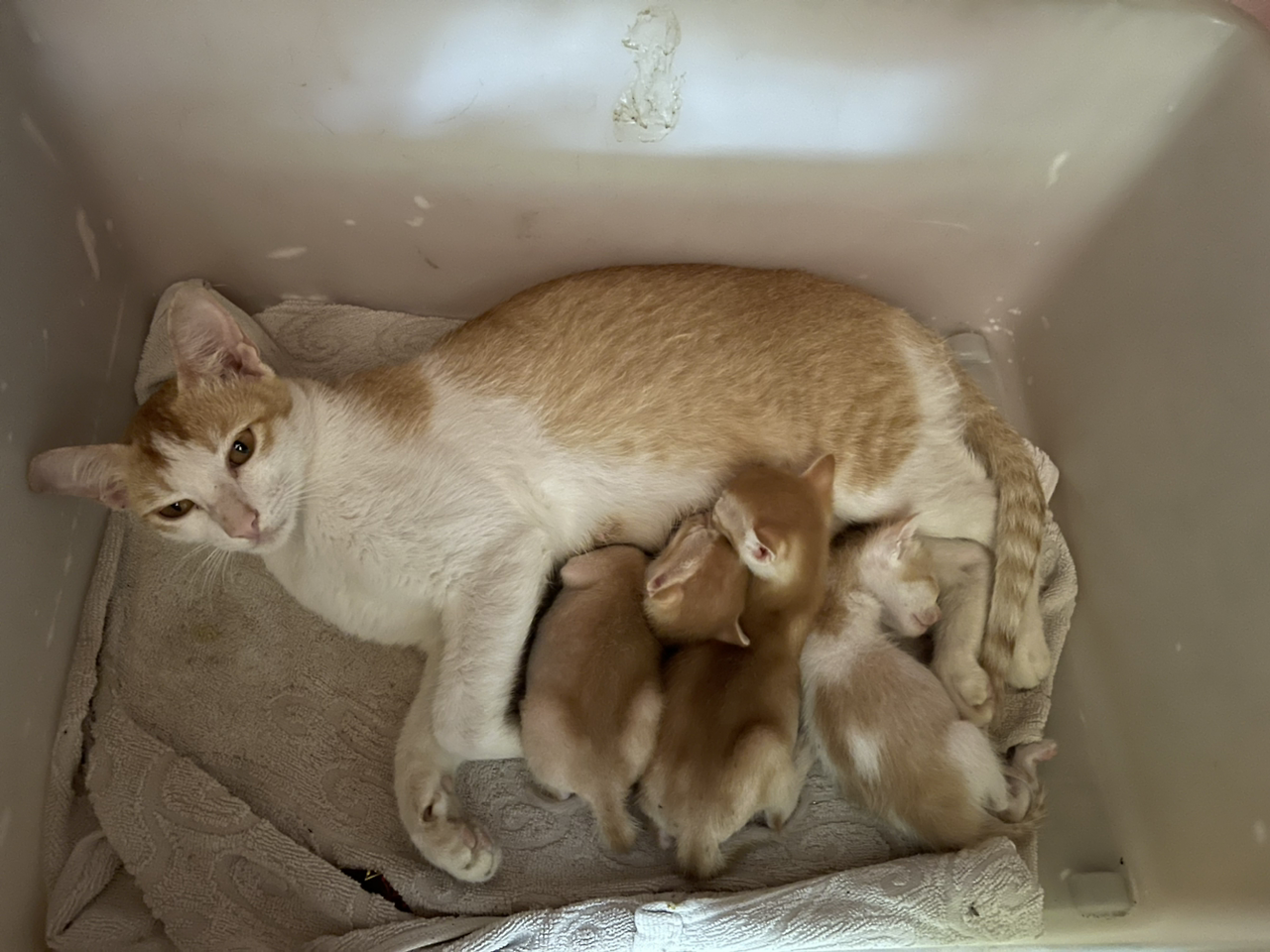 얼마 후, 벤은 세 마리의 예쁜 오렌지 색깔 아기 고양이들을 낳았다.