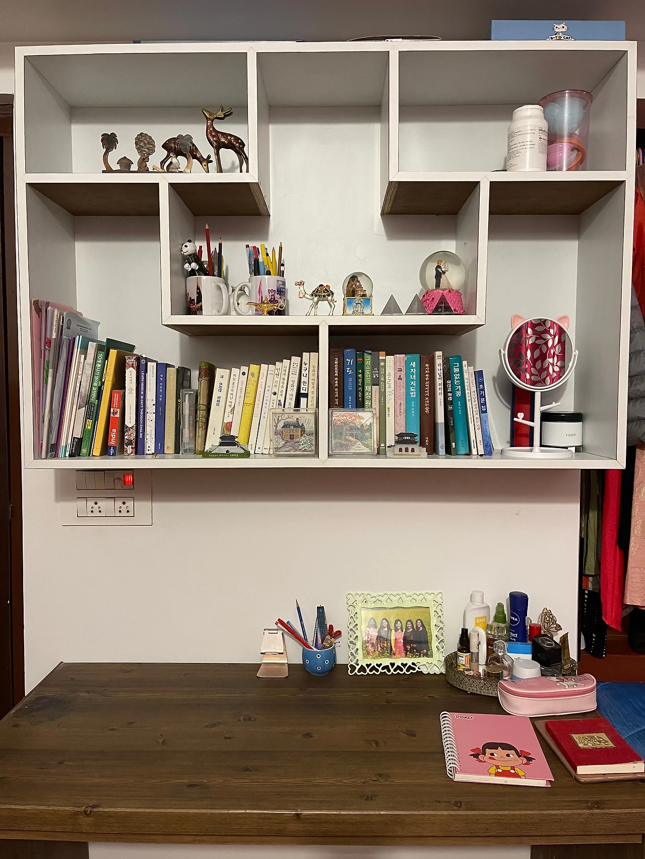 그렇게 나의 바람이 이루어졌다. 남편은 인도 목수 친구에게 아이들 책상 두 개를 부탁했고 나는 한국에서 가져왔던 책상을 쓰게 되었다. 좋은 디자인의 책꽂이도 주문했다.