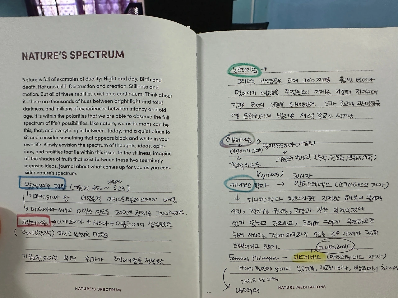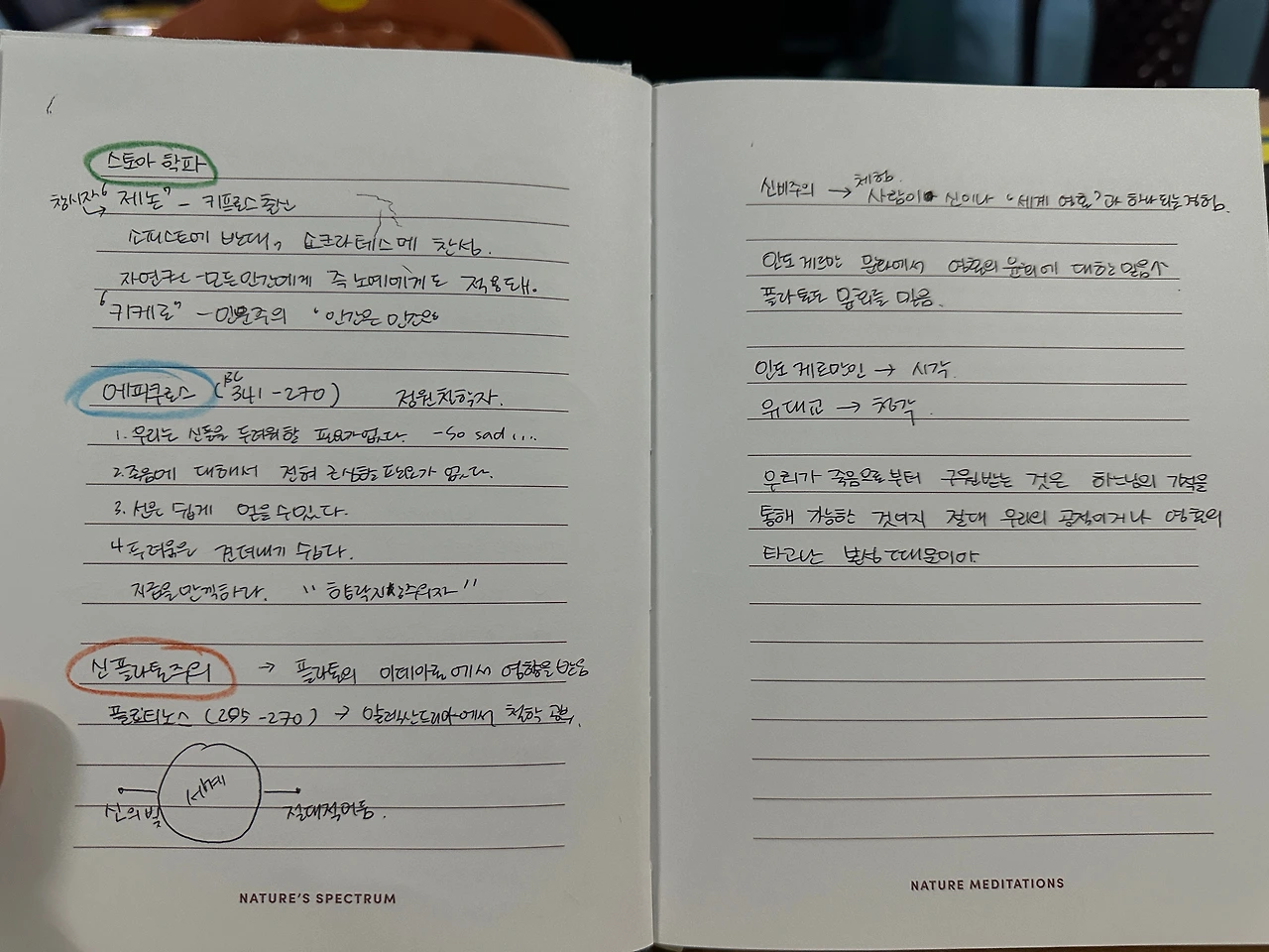 지금은 선량 작가님과 슬로우 리딩을 세 번째 하고 있다. 매주 정해진 분량의 책을 읽고 책에서 뽑은 글을 필사하는 것이었다. 우리가 지금 읽는 글은 '소피의 세계'라는 책인데 생각보다 어려운 책이었다. 철학 입문서라고 알려져 있기도 한 꽤나 딱딱한 책이었다. 에세이나 자기 개발서 위주로 읽던 내게 소피의 세계는 또 다른 도전이었다. 하지만 이제 거의 후반부로 들어서면서 나는 나의 독서가 또 다른 한 단계로 발전한 것을 느낀다.