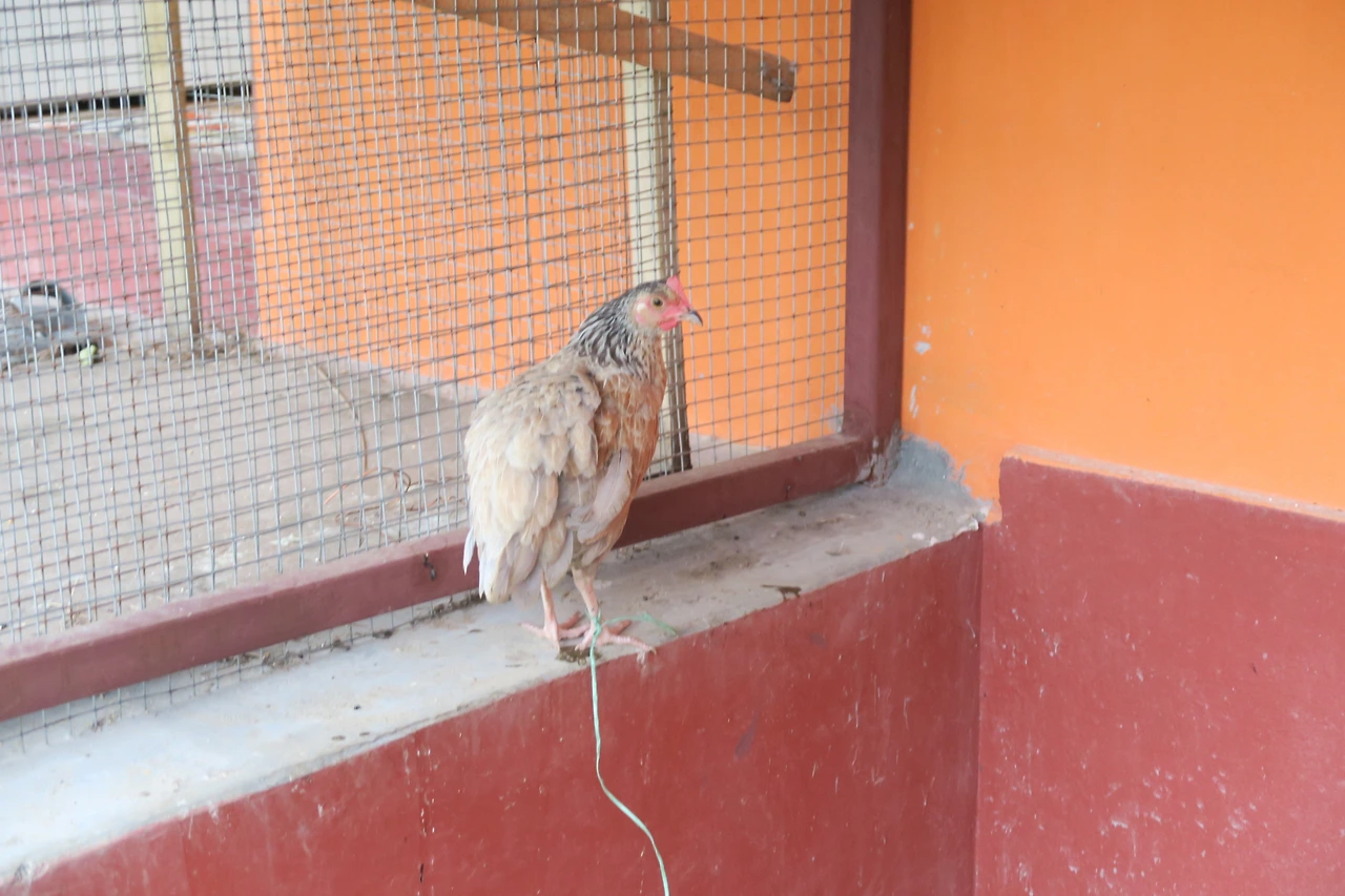 다른 닭들에게도 그랬던 것처럼 하루 이틀은 다리를 묶어서 집 밖으로 나가지 못하게 해 두었다. 며칠이 지나면 닭장이 자기 집인 것을 안다고 해서.
