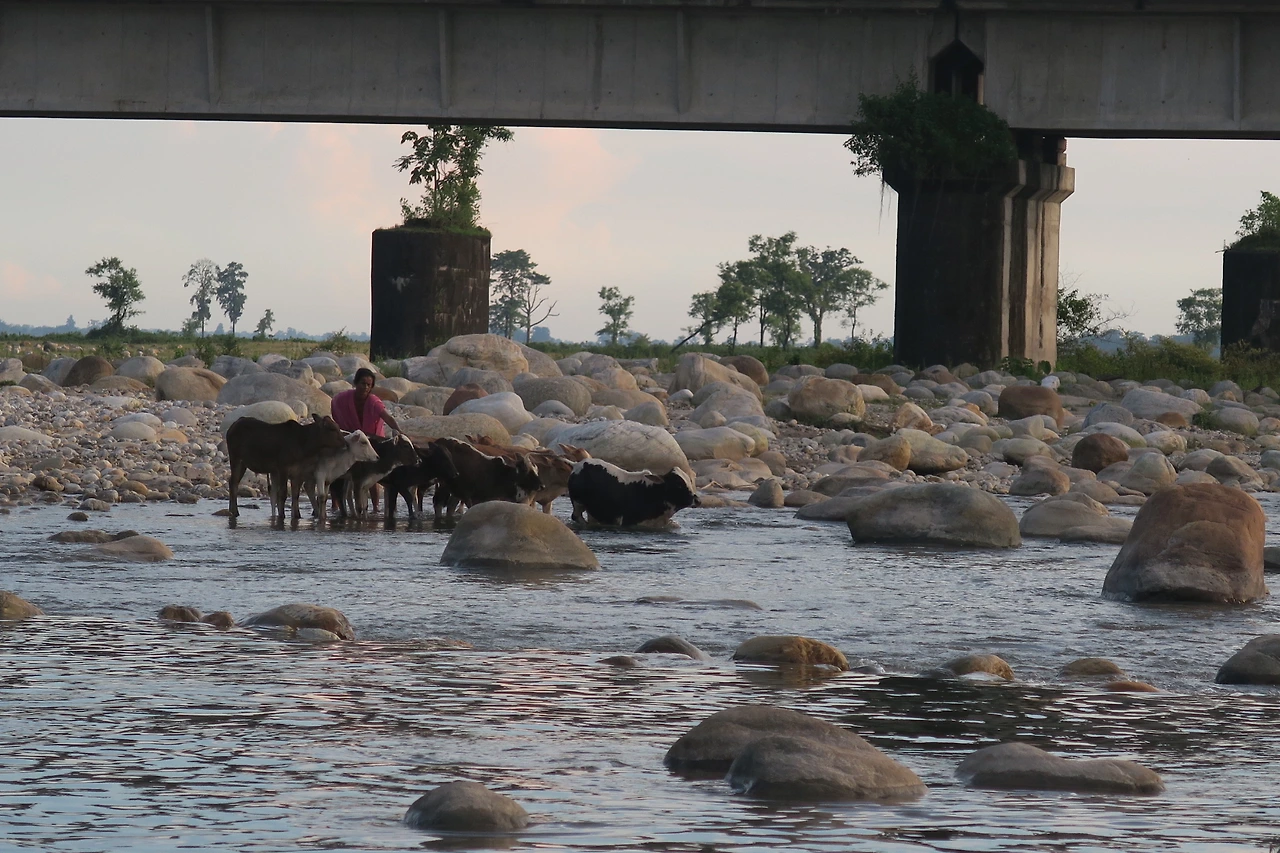 해가 이제 시간이 되었다며 불그스름한 빛을 내뿜으며 뉘엿뉘엿 산 너머로 고개를 숙이려 하자 모두가 바빠진다. 길을 가는 사람들도, 물놀이를 하던 사람들도, 그리고 물가에 소들을 풀어 놓은 주인들도 모두가 해가 지기 전에 집으로 돌아갈 채비를 한다.