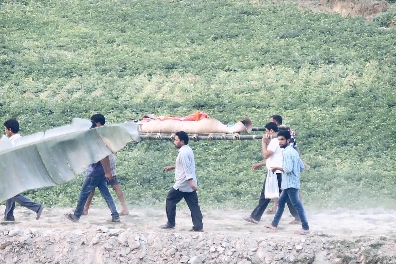 시골이든 도시든 인도인들의 장례 행렬은 간단하다. 여러 사람이 줄을 서고 그저 대나무와 천으로 만든 들것으로 시신을 싣고 강가로 걸어간다.